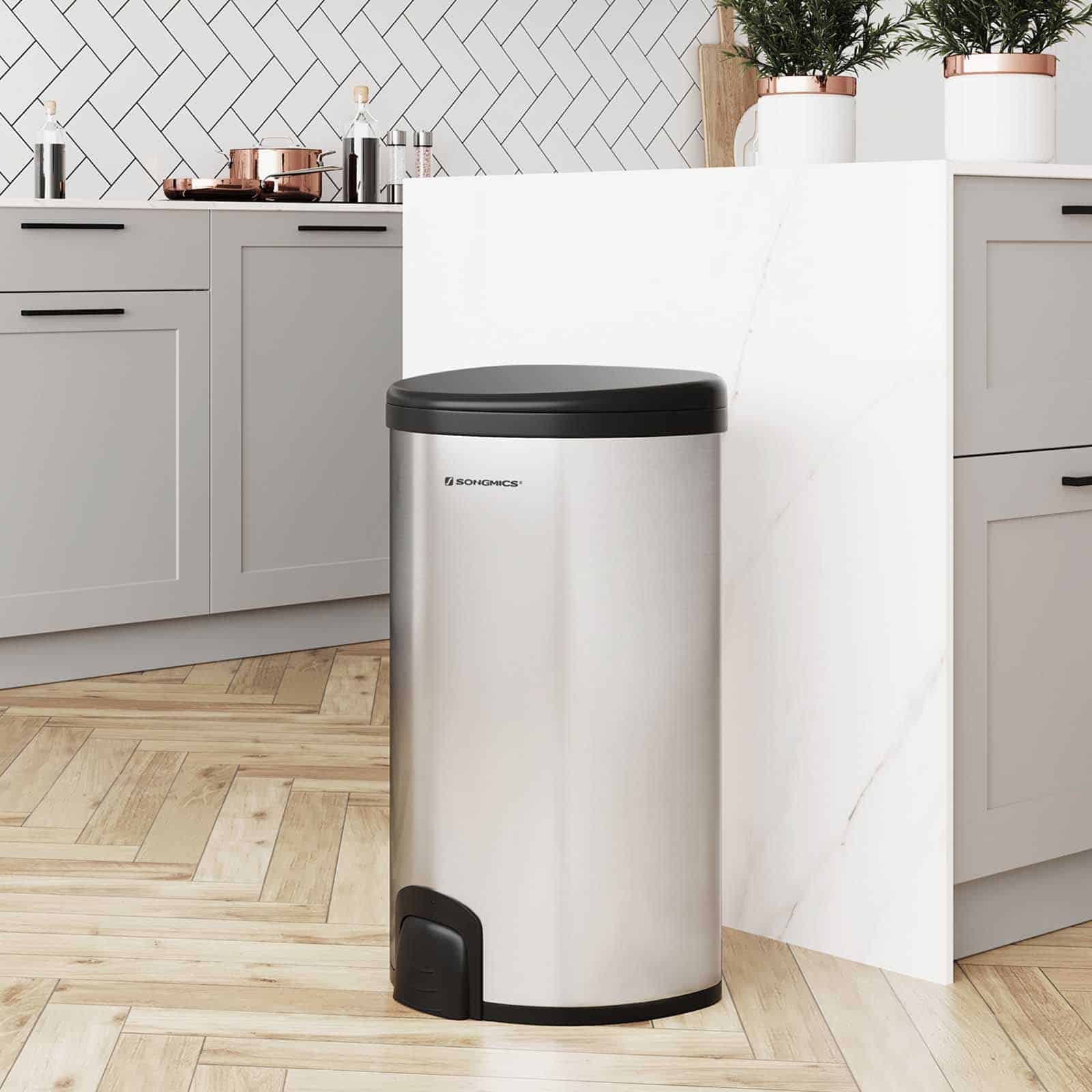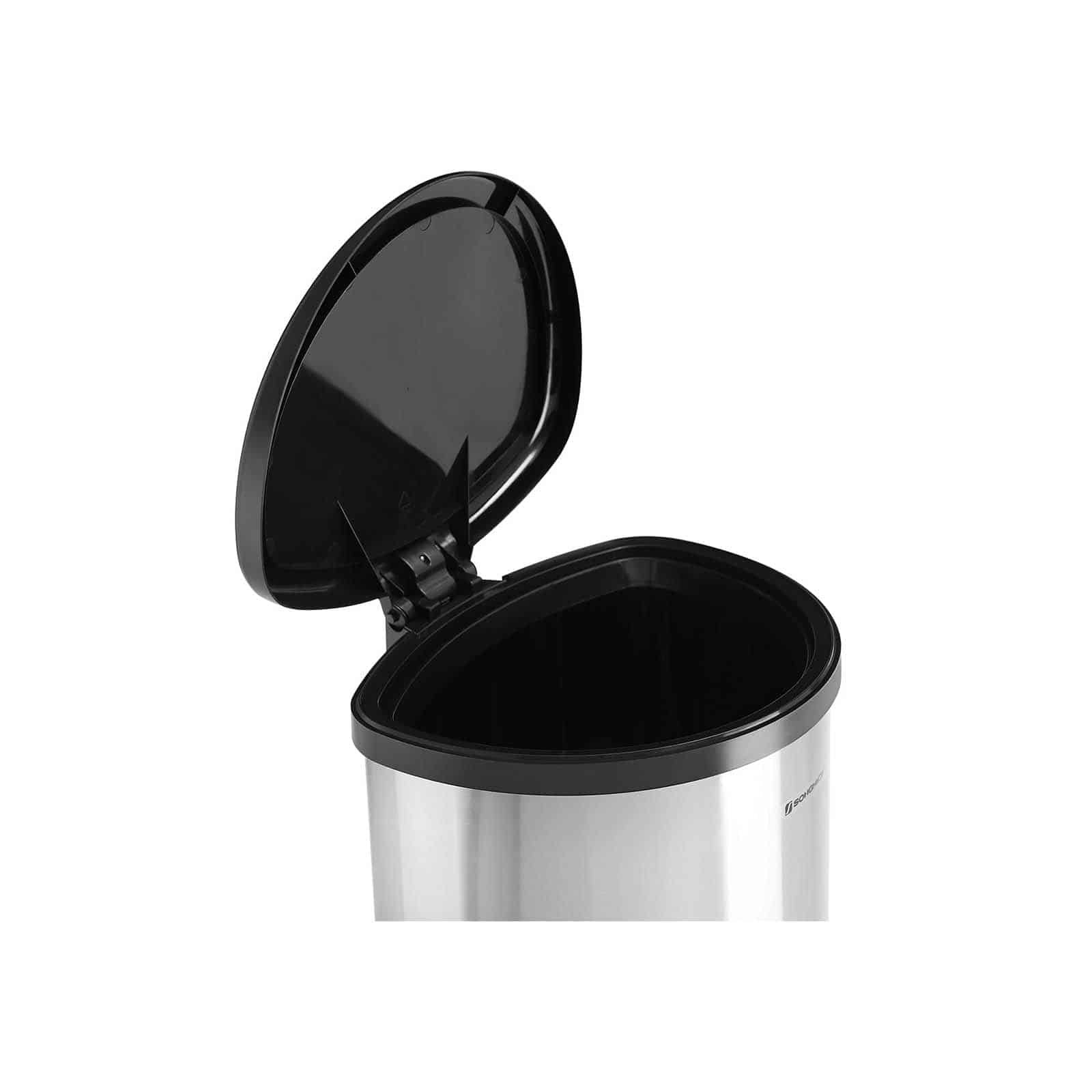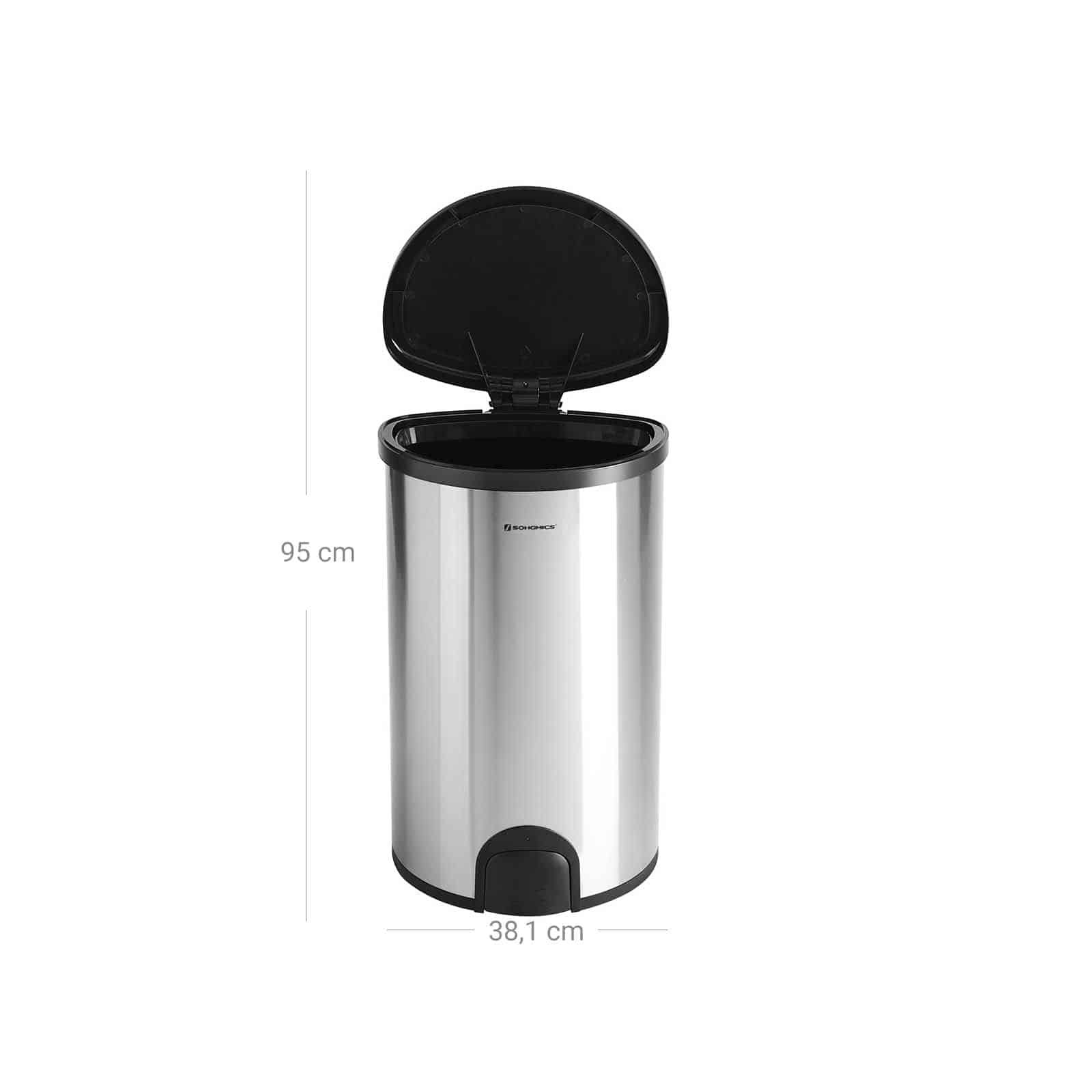 Apraksts tika tulkots automātiski, var rasties kļūdas. Atveriet ar vieglu kājas pieskārienu, brīvroku režīmā: lai atvērtu vāku, jums tikai maigi jāpiesit apakšējam pēdas attaisāmajam, apmēram pēc 5 sekundēm vāks aizvērsies lēni un klusi, radot mierīgu vidi. Kad baterijas beigušās, vāku var atvērt arī ar roku.Kad rosies virtuvē, atkritumu tvertne paliek atvērta, praktisks palīgs tev: viegli uzkāp uz apakšstilba attaisāmā, turi 5 sekundes. un tad viņi to palaiž, vāks paliek atvērts. Lai pēc lietošanas aizvērtu vāciņu, vēlreiz piesitiet atvērējam ar kāju. Korpusa materiāls: Korpuss ir izgatavots no 430 nerūsējošā tērauda, bez pirkstu nospiedumiem un netīrumiem, traipus var viegli noslaucīt. Lielisks blīvējums: pret smaku izturīgs vāciņš efektīvi novērš kaitinošo atkritumu smaku. Plastmasas kājas statīvs aizsargā ārējo tvertni no ūdens, kas atrodas uz zemes, lai efektīvi novērstu rūsu. Produkta informācija: Materiāls: matēts nerūsējošais tērauds (korpuss) + ABS plastmasa (vāciņš) Ārējie izmēri: 35,5 x 64,4 x 38,1 cm (P x A x G) Izmēri ar pilnībā atvērtu vāku: 35,5 x 95 x 38,1 cm (P x A) x D) Krāsa: sudraba (korpuss), melna (vāciņš) Neto svars: 3,18 kg Bruto svars: 5,26 kg Piegādes komplekts: 1 x atkritumu tvertne 1 x instrukcija (DE , EN, IT, FR, ES)
