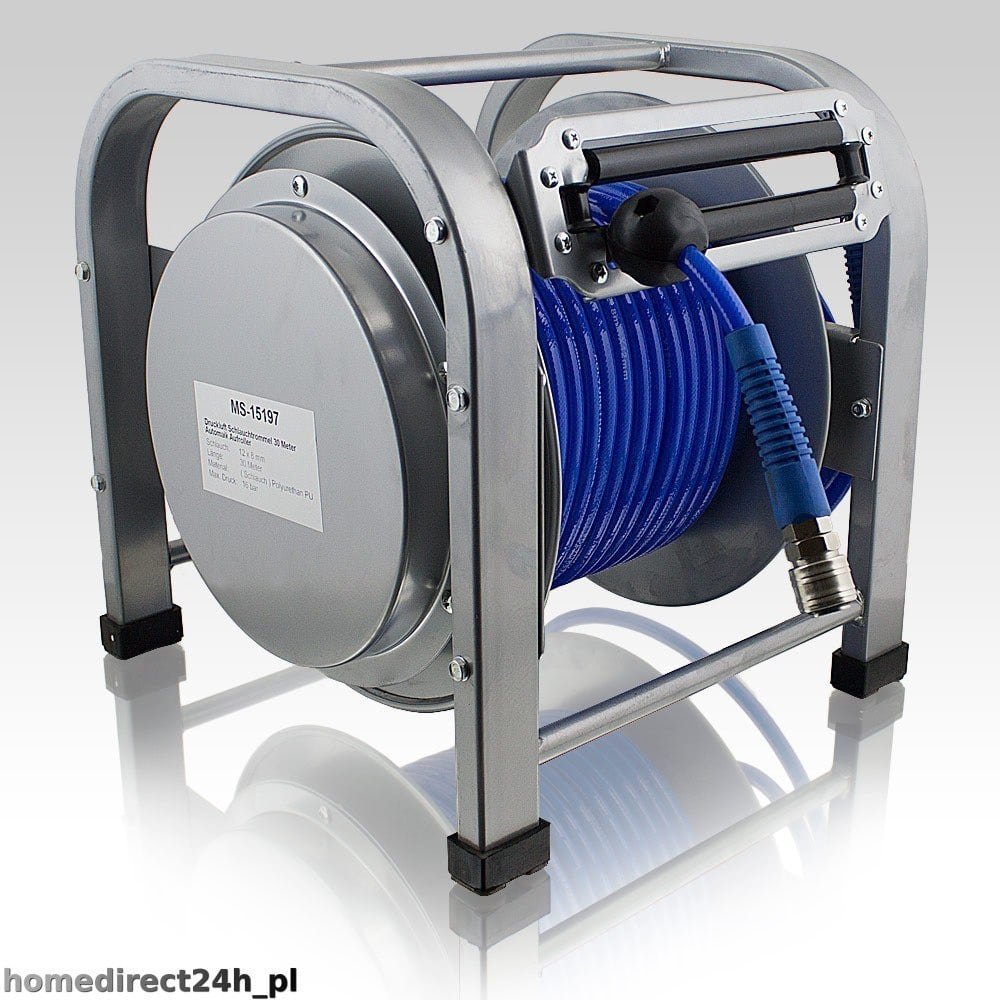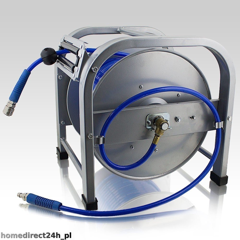 Apraksts tika tulkots automātiski, var rasties kļūdas. PROFESIONĀLA PNEIMATISKĀ ŠĻŪTENE 30 M AR AUTOMĀTISKO SPOLI AR AUTOMĀTISKĀS SPOLES FUNKCIJU; ; Efektīvs darbs darbnīcā, dārzā vai mājās. Pneimatiskā šļūtene ar automātisko spoli, 30m gara. Pateicoties automātiskajai uztīšanas sistēmai, jūs uzlabosiet savu darbu un tajā pašā laikā jūsu darba vieta kļūs drošāka – uz grīdas nebūs izkliedētas un sapinušās pneimatiskās šļūtenes. Ideāli piemērots profesionāļiem un dari-to-yourselfer. Produkts ir izgatavots no izturīga, UV izturīga materiāla. Tvertne tiek piegādāta pilnībā samontēta un gatava tūlītējai lietošanai. Tehniskie dati: Garums: 30 metri, Stiprums: 16 bāri, Šļūtene: PU materiāls, Krāsa: zila, Svars: 13,9 kg ĪPAŠĪBAS: ; automātiskā uztīšana, ; ātrie savienotāji, ; 30 metrus garš, ; savienojuma kabelis 1,00 metri KOMPLEKTS IEKĻAUJ: – 1x šļūtene pneimatiskām ierīcēm ar automātisko uztīšanas sistēmu. ; Iepakojuma izmēri: 41x38x43cm Svars ar iepakojumu: 15,5kg