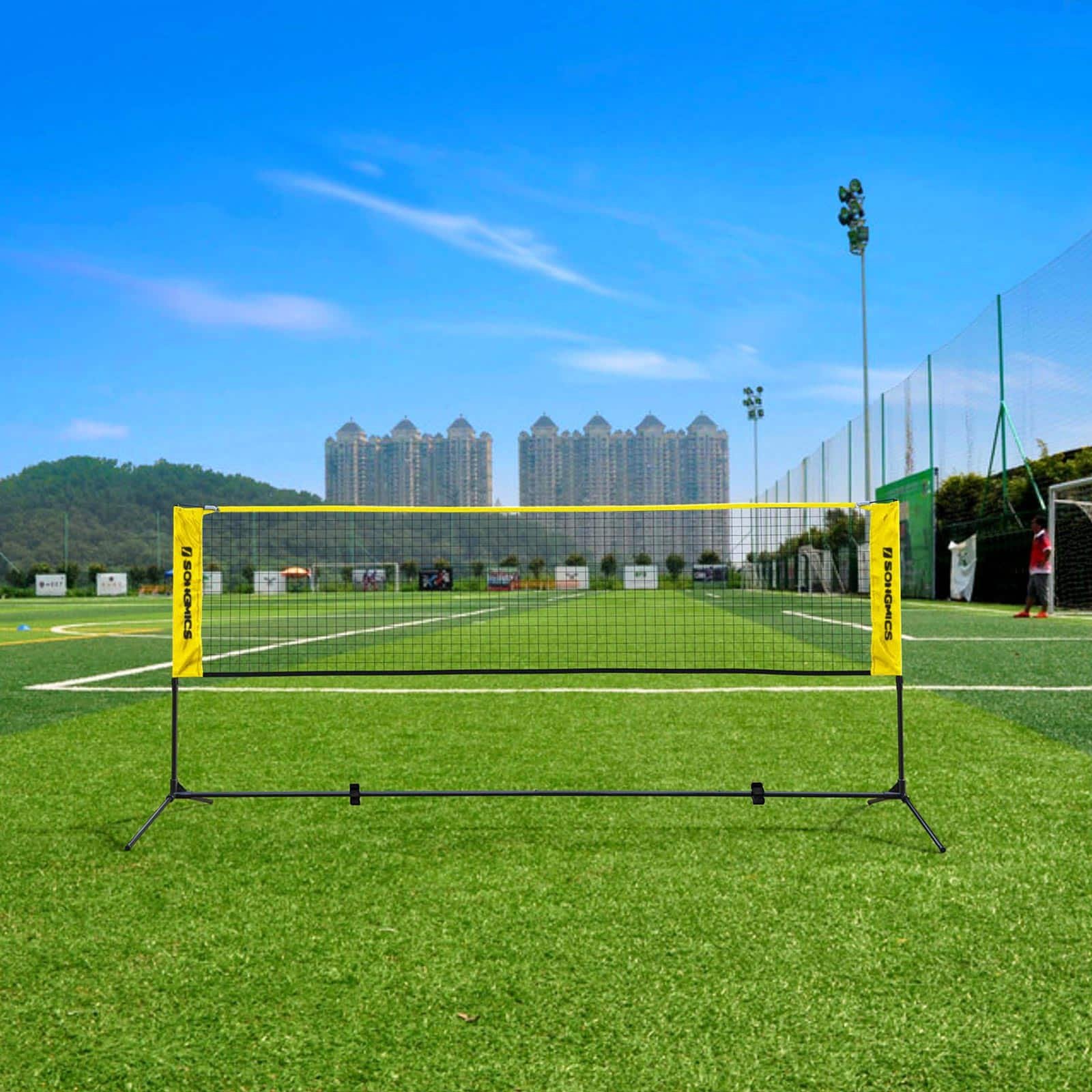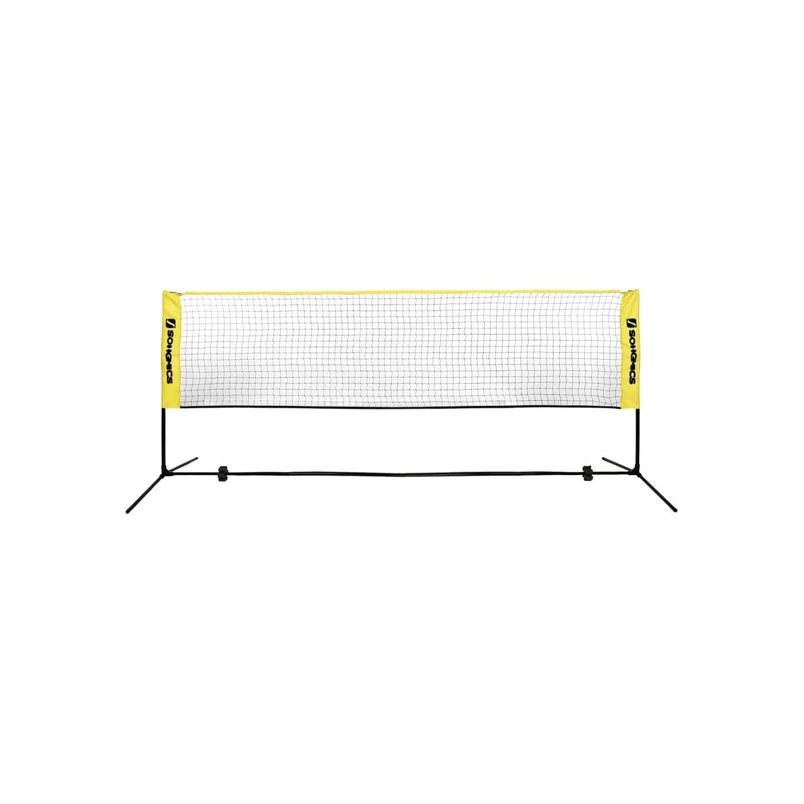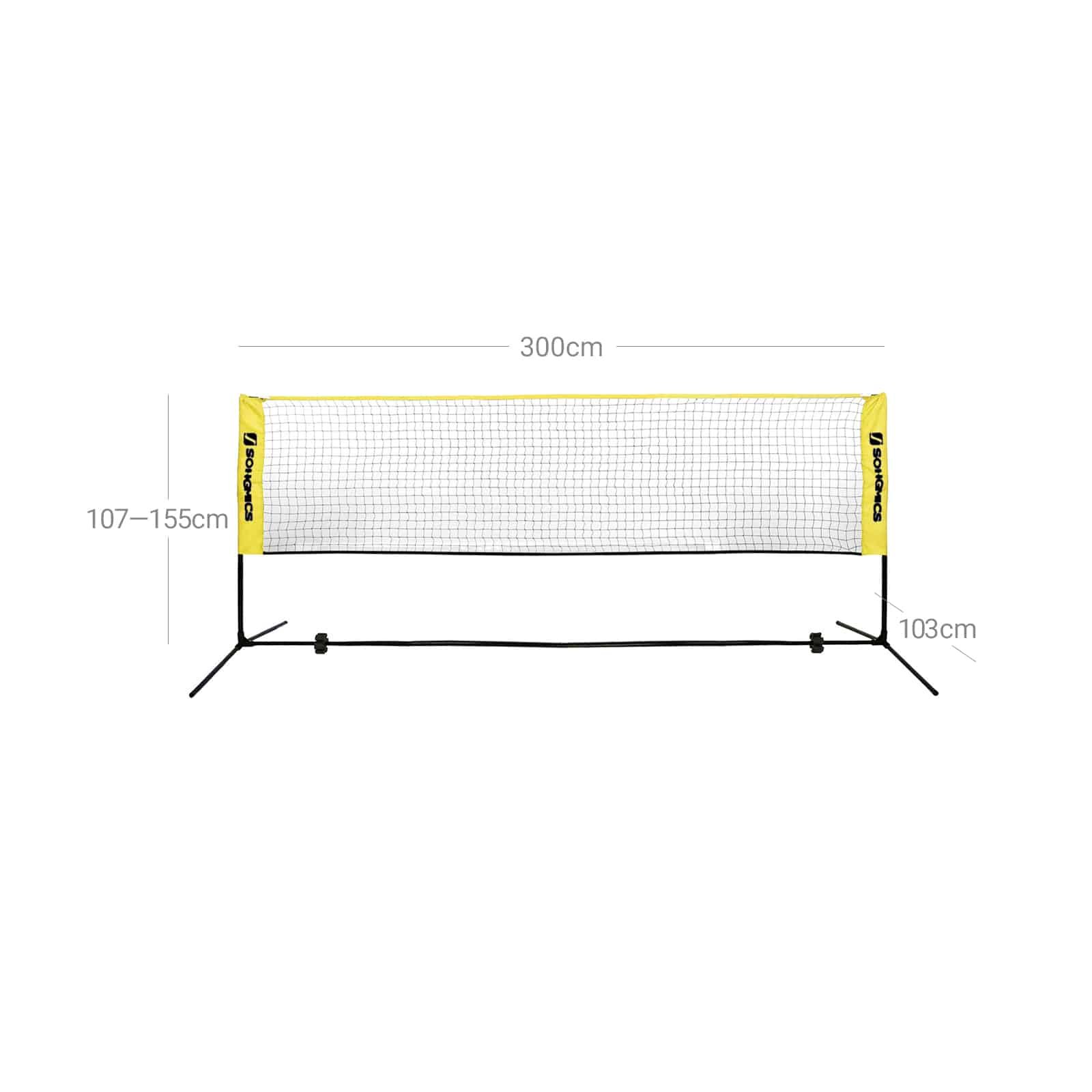 Apraksts tika tulkots automātiski, var rasties kļūdas. Ārā ir saulains un zaļš, bet jūsu ģimene ir televizora vai viedtālruņa priekšā? Šajā pavasarī un vasarā jūs beidzot varat viņus atkal ievilināt dārzā: kopā uzspēlējiet badmintonu! Bez elektronikas vai citiem traucēkļiem jūsu bērni izklaidēsies dabā un stundām ilgi spēlēs badmintonu. Ar šo SONGMICS badmintona tīklu jūs būsiet savas ģimenes zvaigzne un jūsu spēles partneris Nr. 1! Šīs ir SONGMICS badmintona tīkla galvenās iezīmes: – Tīkls ar regulējamu augstumu ar 107, 120 un 155 cm marķējumu. – Piemērots daudziem tīkla sporta veidiem: badmintons, teniss, volejbols utt. – Var iestatīt un noņemt tikai dažu minūšu laikā. – Papildu stabilitātei ir iekļauti 4 zemējuma āķi. – Neilona savienojumi uz tīkla kājām, atverami 4 virzienos, izgatavoti no tā paša materiāla, ko izmanto amortizatoru izgatavošanai. Tāpēc tie ir īpaši izturīgi un izturīgi. – Iekļauts arī pārnēsāšanas soma. Šis komplekts sastāv no sieta tīkla un stabiliem dzelzs stieņiem. Tas ļauj dažu sekunžu laikā izveidot rotaļu laukumu savā dārzā, pagalmā, parkā, pludmalē vai sporta zālē. Pēc tam dzenājiet bruņurupuci un uzspēlējiet savvaļas badmintona spēli ar draugiem vai ģimeni. Produkta informācija: – Krāsa: melna-dzeltena – Materiāls: dzelzs stieņi, PE (polietilēna) siets, Oksfordas audums – Izmērs: 300 x 103 x 155 cm (G x P x A) – Dzelzs stieņu diametrs: 19 mm – Svars: 3, 8 kg Piegādes komplekts: – 1 x badmintona tīkls – 1 x transportēšanas soma – 4 x zemes āķi – 1 x instrukcija (DE, EN, FR, ES, IT)