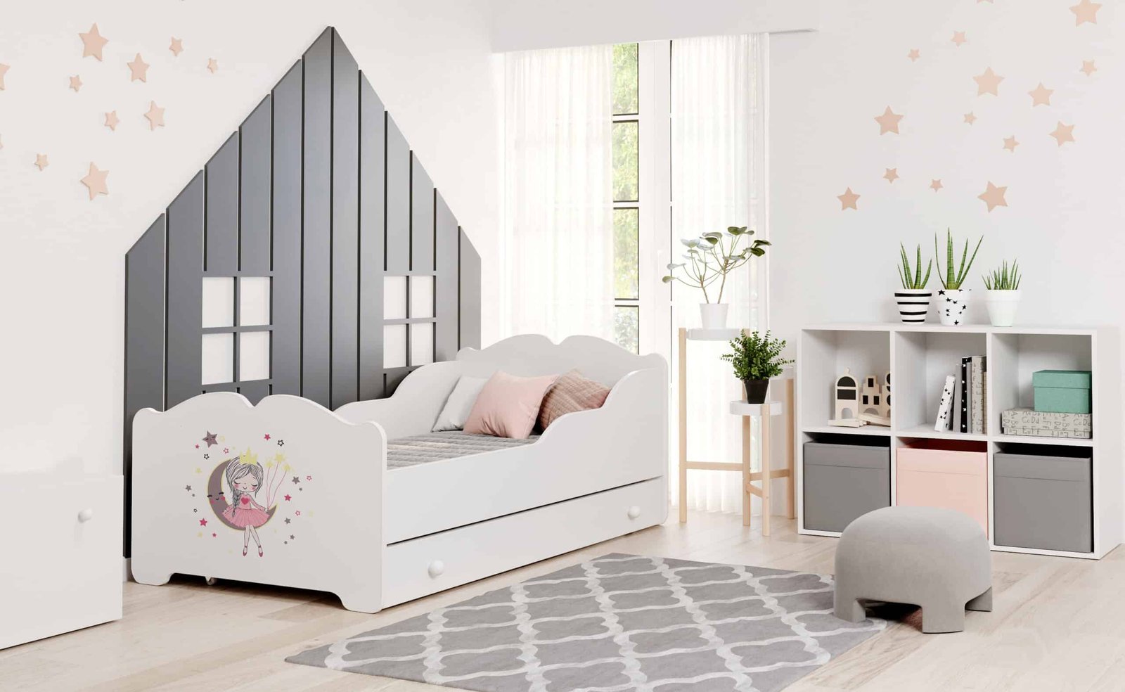 Bērnu gulta Anna ar atvilktni un matraci 164 cm x 85 cm x 63 cm, princese ar mēnesi