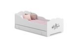 Bērnu gulta Anna ar atvilktni un matraci 164 cm x 85 cm x 63 cm, te guļ princese