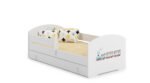 Apraksts tika tulkots automātiski, var rasties kļūdas. Bērnu gulta ar matraci, universālu aizsargbarjeru un atvilktni. Universāla atvilktne uz riteņiem. Izmēri: garums 125 cm, platums 70 cm, augstums 15 cm. Ir iespējams uzstādīt atvilktni un aizsargbarjeru labajā vai kreisajā pusē. Gultas izmēri, garums 144 cm, platums 77 cm, augstums 56 cm. Guļamvieta 140 cm x 70 cm. Porolona matracis ar noņemamu pārvalku, izmērs: 140 cm x 70 cm x 7 cm. Gultas konstrukcija ir izgatavota no augstas kvalitātes laminētas plātnes, kas padara to stabilu un izturīgu. Gultas malas ir apdarinātas ar PVC/ABS malām, kas lieliski pasargā no mehāniskiem bojājumiem. Gultas rāmis izgatavots no FLEX sistēmas atsperu stieņiem, maksimālā slodze līdz 110 kg. Ražošanas procesā tiek izmantotas ekoloģiskas ūdens bāzes krāsas, kas ir drošas un izturīgas pret mehāniskiem bojājumiem. Turklāt grafika tiek montēta ar laminātu. Komplektā ietilpst matracis, rāmis un gulta