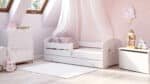 Bērnu gulta Luk ar atvilktni, matraci un aizsargbarjeru 144 cm x 77 cm x 56 cm, princese ar vienradzi