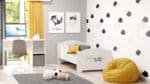 Apraksts tika tulkots automātiski, var rasties kļūdas. Bērnu gulta ar matraci. Gultas izmēri, garums 144 cm, platums 75 cm, augstums 63 cm. Guļamvieta 140 cm x 70 cm. Porolona matracis ar noņemamu pārvalku, izmērs: 140 cm x 70 cm x 7 cm. Gultas konstrukcija ir izgatavota no augstas kvalitātes laminētas plātnes, kas padara to stabilu un izturīgu. Gultas malas ir apdarinātas ar PVC/ABS malām, kas lieliski pasargā no mehāniskiem bojājumiem. Gultas rāmis izgatavots no FLEX sistēmas atsperu stieņiem, maksimālā slodze līdz 110 kg. Komplektā ietilpst matracis, rāmis un gulta