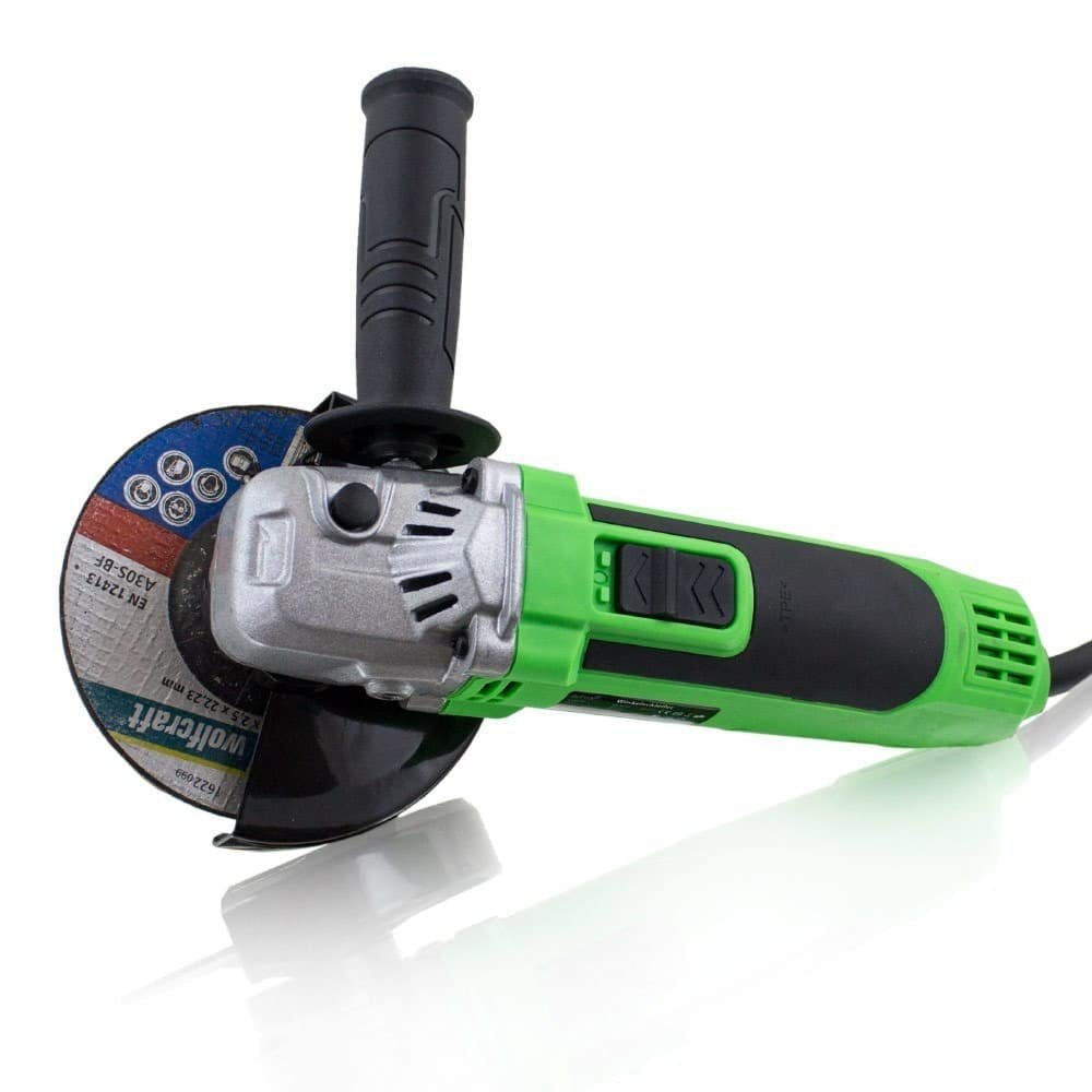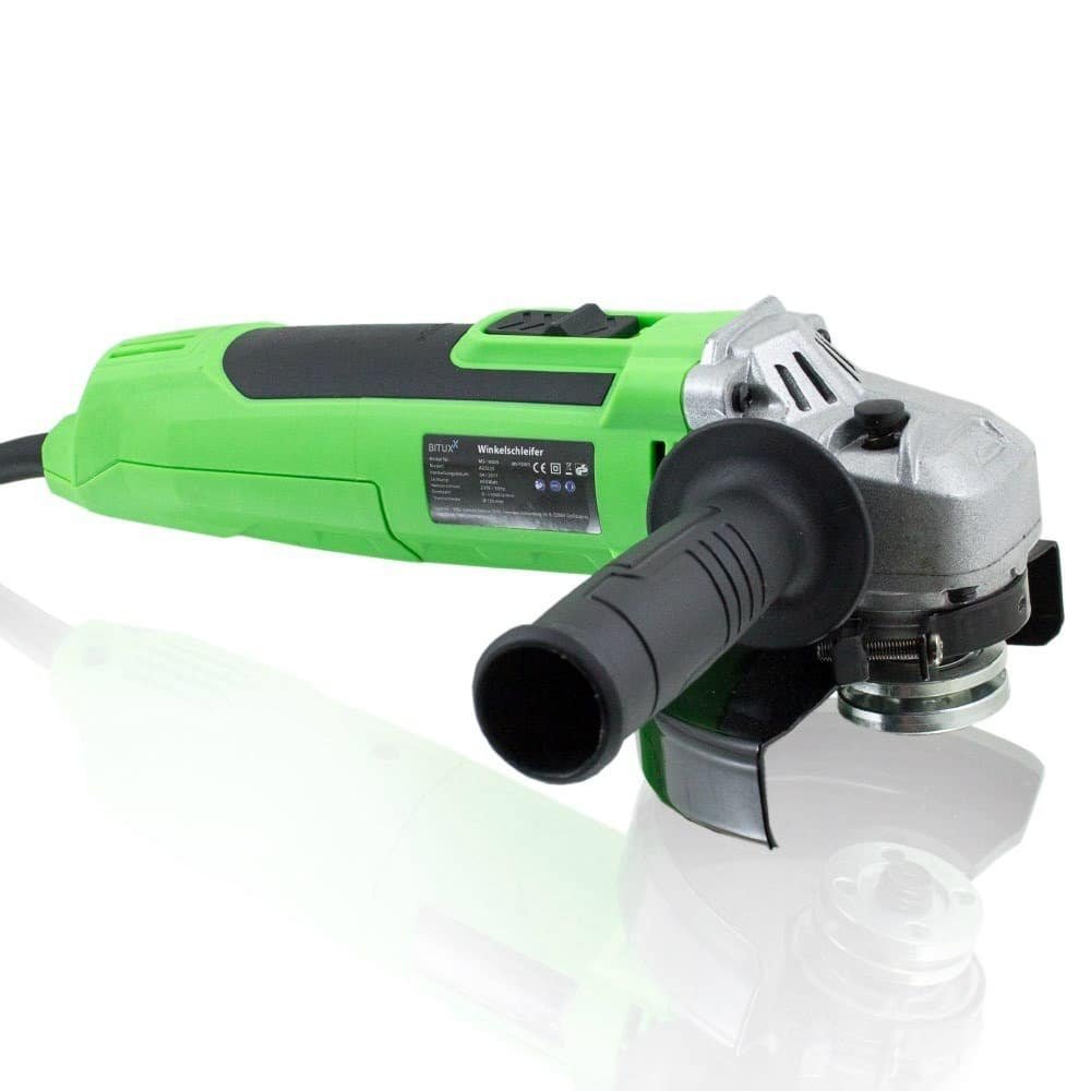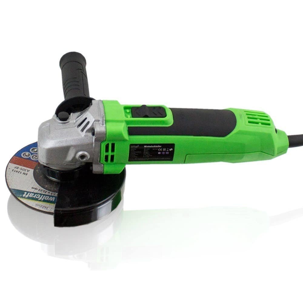 Apraksts tika tulkots automātiski, var rasties kļūdas. PROFESIONĀLA, MŪSDIENA 650 W BITUXX LEŅĶA dzirnaviņas Bituxx leņķa slīpmašīna ir ideāli piemērota metāla, flīžu un betona bloku slīpēšanai, tīrīšanai un griešanai. Ātruma diapazons ir regulējams 6 soļos no 0 līdz 11 000 apgr./min. Tehniskie dati: Jauda: 650 W, Barošana: 230 V / 50 Hz, Mašīnas apgriezienu diapazons: 0 līdz 11000 U/min (6-pakāpju regulēšana), Maks. diska diametrs: 125 mm, Cauruma diametrs: 22 mm, Vārpsta: M14, Kabeļa garums: 3 m, Mašīnas svars: aptuveni 1,80 kg IEKĻAUTS: 1 x 650 W leņķa slīpmašīna, -; 1x vāks, 1x rokturis, 1x kompresijas atloks, 1x M14 kompresijas uzgrieznis -; 1 x uzgriežņu atslēga,; 2 x rezerves ogles, ; Piezīme: griešanas disks nav iekļauts.