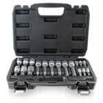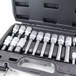 Apraksts tika tulkots automātiski, var rasties kļūdas. Sešstūrveida uzgriežņu atslēgu komplekts Komplekts sastāv no 18 sešstūra ligzdām, kas izgatavotas no izturīga un ilgmūžīga hroma vanādija tērauda. Lielisks komplekts DIY entuziastiem un profesionālām darbnīcām, ērta un praktiska instrumentu kaste Komplekta saturs: 6 x 1/4″ 55L uzgaļu ligzdas: HW 3,4,5,6,7,8 6 x 1/2″ uzgaļu ligzdas 30L : HW 6,7,8,10,12,14 6 x 1/2″ uzgaļu ligzdas 75L : HW 5,6,7,8,10,12 1 x plastmasas kaste Specifikācijas: Materiāls: hroma vanādija tērauds