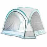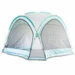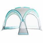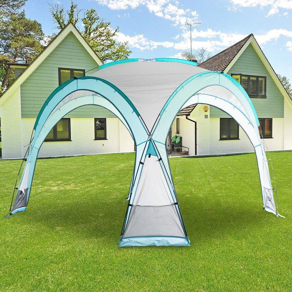 Apraksts tika tulkots automātiski, var rasties kļūdas. LIELĀ DĀRZA PAVILJONA KUPOLA TELTS ; Liela, taču ļoti viegla dārza telts, kas lieliski piemērota jebkuram dārza pasākumam vai kempingam un izbraucieniem. Praktiskā transportēšanas soma aizņem ļoti maz vietas un ļauj to paņemt līdzi, kur vien vēlaties! ; Funkcijas: Ūdensizturīgs, Izturīga un stabila konstrukcija, Aizsardzība pret visa veida kukaiņiem, Aizsardzība no saules, lietus un vēja, Ērta pārnēsāšanas soma. ; Specifikācijas: ; Izmēri (L/W): aptuveni 3,50 x 3,50 m, Kopējais augstums: aptuveni 2,40 m, Izplūdes augstums: aptuveni 1,90 m, Svars: aptuveni 9 kg, Materiāls – jumts: 100% poliesters, Materiāls – sānu sienas: 100% poliesters, Materiāls – rāmis: pārklāts ar stiklšķiedru, Krāsa: tirkīza. ; Komplektā: dārza telts, soma, montāžas materiāls. ; Ērtai telts montāžai iesakām 2-3 cilvēkus. Kastes izmēri: 73 x 20 x 20 cm