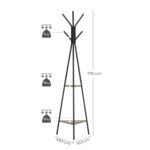 Apraksts tika tulkots automātiski, var rasties kļūdas. Produkta informācija: – Krāsa: Pelēka Melna – Materiāls: Kokskaidu plātne, Tērauds – Izmērs: 49,5 x 49,5 x 179 cm (G x P x A) – Svars: 3,3 kg – Maksimālā statiskā slodze uz vienu āķi: 5 kg – Maksimālās statiskās slodzes plaukts ietilpība: 10 kg Piegādes komplekts:- 1 x mēteļu pakaramais- 1 x piederumu komplekts- 1 x rokasgrāmata (DE, EN, FR, ES, IT)