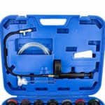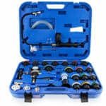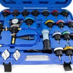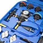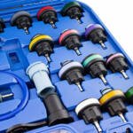 Apraksts tika tulkots automātiski, var rasties kļūdas. Visaptverošs 28 daļu saldēšanas sistēmas noplūdes testeris. Dzesēšanas šķidruma noplūdes detektors ir piemērots visiem populāriem transportlīdzekļu modeļiem un zīmoliem no Eiropas, Āzijas un ASV. Ar šo detektoru varat ātri pārbaudīt un pārbaudīt savas automašīnas dzesēšanas sistēmu. Vienkāršs un saprotams dzesēšanas sistēmas testera komplekts, kas sastāv no manometra ar sūkni, uzpildes kakliņa un adapteriem dažādiem transportlīdzekļu modeļiem. ; ; Tehniskās specifikācijas:;; Korpusa izmēri: 580mm x 480mm x 110mm (L / D / H), Maksimālais spiediens: 0 – 2,5 bāri, Svars: 5,5 kg. Komplektā: 1x spiediena sūknis ar manometru, 1x uzpildes kakls, 1x 0-200° termometrs, 1x caurspīdīga šļūtene, 1x adaptera uzgriežņu atslēga, 23x adapteri, 1x plastmasas korpuss. ;