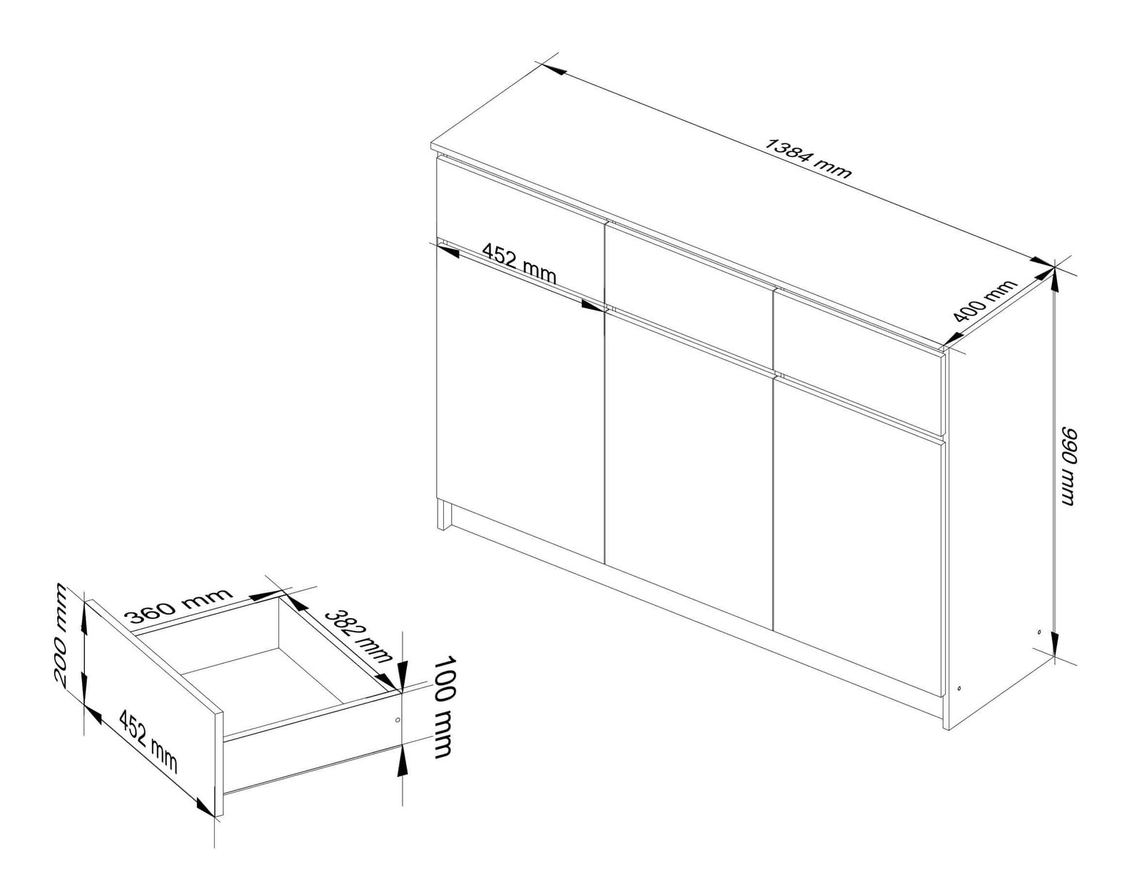 Apraksts tika tulkots automātiski, var rasties kļūdas. Piedāvājam ārkārtīgi elegantu kumodi, kas izgatavota no augstas kvalitātes laminētas plātnes. Tas ir 16 mm biezs un nodilumizturīgs. Tas ir no atzītā ražotāja Kronospan, pateicoties kuram tas ir ilgmūžības garantija. Kumodei ir trīs atvilktnes un trīs skapji. Atvilktnes darbojas uz metāla rullīšu vadotnēm, kas nodrošina gludumu un vieglu atvēršanu un aizvēršanu. Savukārt katram no skapjiem ir ietilpīgs plaukts, tos atver durvis. Mēbeļu malas ir pārklātas ar ABS apmalēm, kas nodrošina augstu aizsardzību pret bojājumiem. Kumode paredzēta pašmontēšanai. Katram pasūtījumam ir pievienota instrukcija, kurā ir izskaidrots, kā vienkārši un skaidri salikt mēbeles. Lai gan kumode ir ļoti izturīga un izturīga, mēs piedāvājam 24 mēnešu garantiju. Veicot pasūtījumu, varat būt pārliecināti, ka prece būs ideālā stāvoklī. Mūsu kumodei ir vienkārša forma, tāpēc to var viegli pielāgot dažāda veida interjera izkārtojumam. Lieliski piemērots viesistabai, gaitenī un guļamistabā. Tas ir plašs un funkcionāls. Uz galda virsmas var izvietot dažādus dekoratīvos elementus, kas padara mēbeles daudz raksturojošākas. Kumode ir veidota, ņemot vērā mūžīgo eleganci, padarot to daudzpusīgu. Tā priekšrocība ir arī rūpīga apstrāde un augsta izturība pret bojājumiem. Tas ir 99 cm augsts un 138 cm garš. Kumodes kopējais svars ir 65 kg. Tās tonis ir cēls balts. Kumode ir izgatavota no augstas kvalitātes 16mm nodilumizturīgas laminētas plātnes. CD piegādā ražotājs Kronospan Atvilktņu fasādes ir izgatavotas no laminētas plātnes Atvilktnes darbojas uz metāla bīdāmiem rullīšiem Malas ir pārklātas ar ABS apmalēm, lai nodrošinātu labu aizsardzību pret bojājumiem Katras durvis iekšpusē ir viens plaukts Pašmontētā kumode Instrukcijas ir iekļauta 24 mēnešu garantija