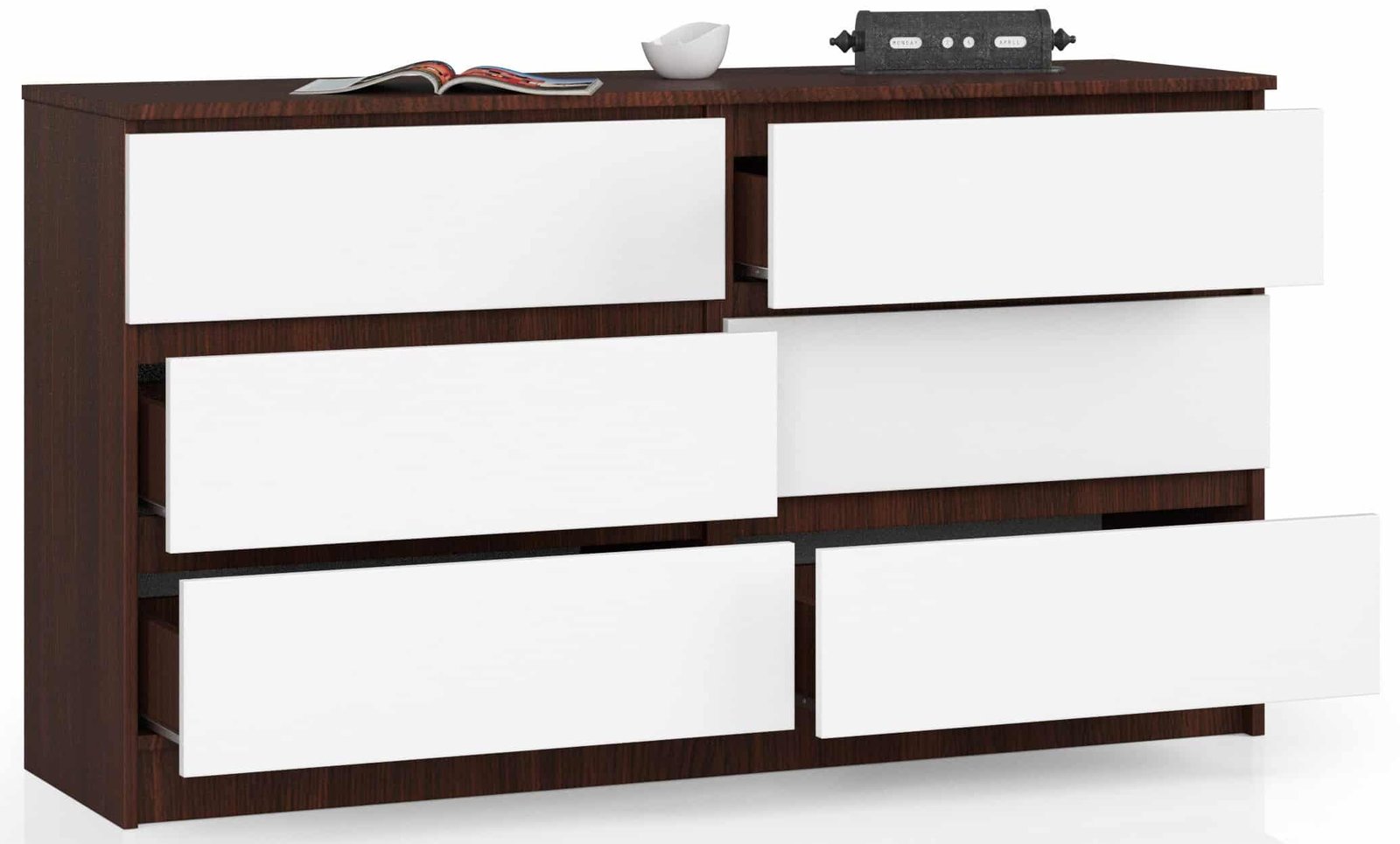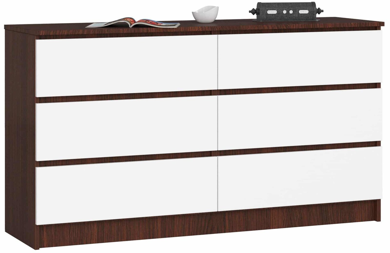 Kumode NORE K140 ar 6 atvilktnēm, tumši brūna/balta