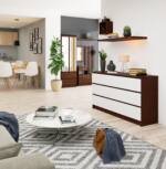 Kumode NORE K140 ar 6 atvilktnēm, tumši brūna/balta 133,95