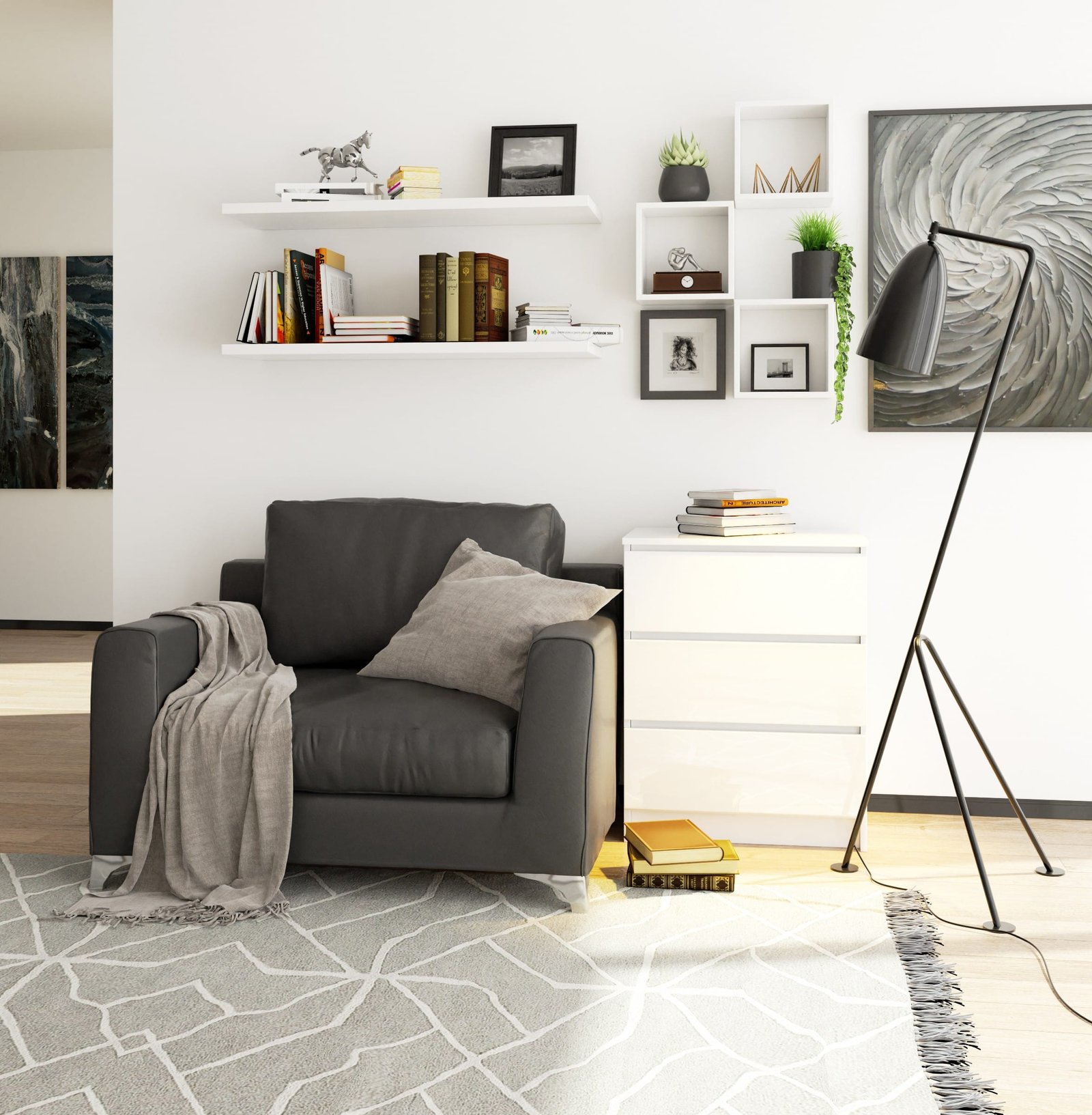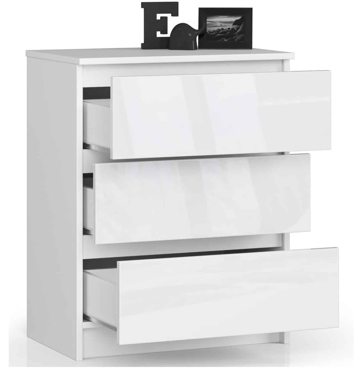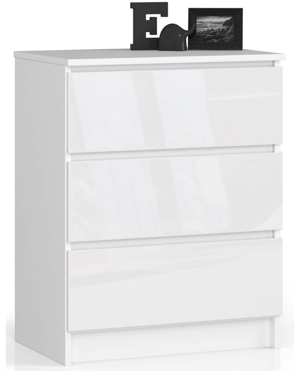 Kumode NORE K60 ar 3 atvilktnēm, spīdīgi balta