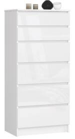Kumode NORE K60 ar 6 atvilktnēm, spīdīgi balta