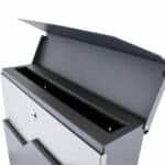 Apraksts tika tulkots automātiski, var rasties kļūdas. MŪSTĪGĀ PASTKASTE VĒSTUKAS PASTS LIELS INTERESANTS DIZAINS ; ; ;Mūsdienīgajai pastkastei ir interesants moderns dizains, kas noteikti piesaistīs uzmanību.; Mūsu pastkastes ietilpība ir ļoti liela. Tas ir aizslēgts ar atslēgu. Kastes apakšā ir nodalījums avīzēm. Kastes uztvērējs ir pārklāts ar atloku.; ; Produkta īpašības: Mūsdienīga pulverkrāsota pastkaste Nerūsējošā tērauda grafīta krāsas atloks Laikrakstu uzglabāšana ;atslēgas Stiprinājuma materiāls ; Tehniskie dati: Izmēri (P / H / A) 370 x 370 x 105 mm Žurnāla izmēri (B / A / A): 360 x 90 x 80 mm Derīgie izmēri 335 x 35 mm Krāsa grafīts un nerūsējošais tērauds Materiāls: Cinkots krāsots pulvertērauds pārklāts / nerūsējošais tērauds Materiāla biezums: 0,6-0,8 mm ; ; Horizontāli 23,0 cm Vertikāli 17,0 cm Diagonāli 28,5 cm