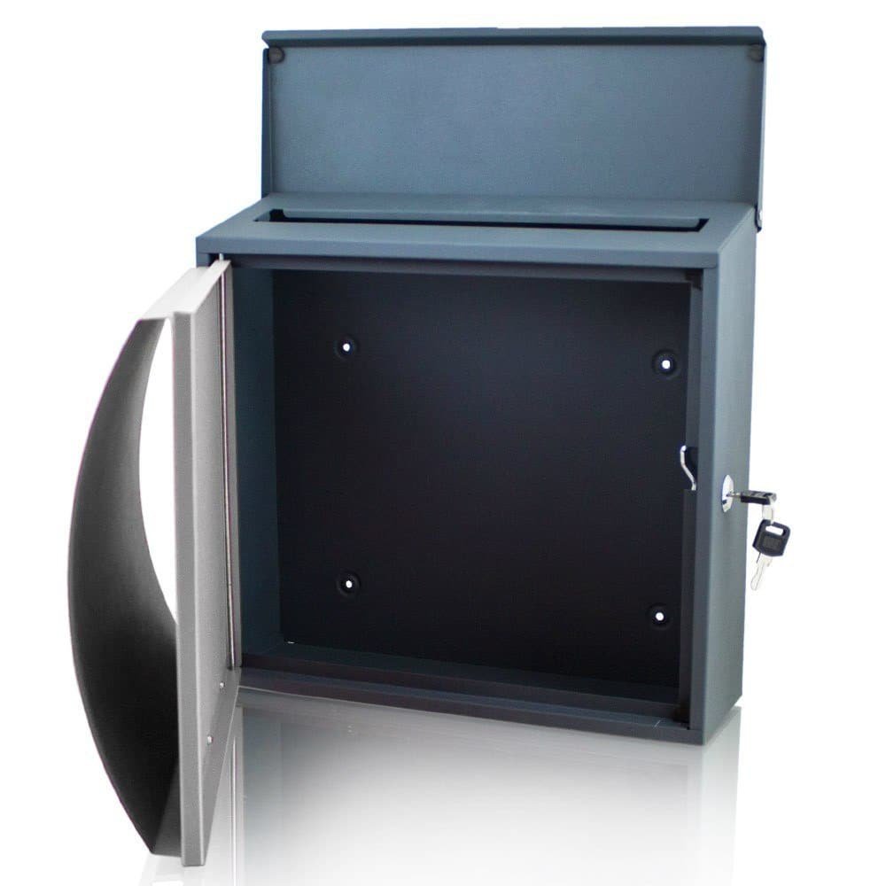 Apraksts tika tulkots automātiski, var rasties kļūdas. Tumši pelēka pulverkrāsota pastkastīte ar avīžu turētāju un gaiši pelēkām durvīm.Pastkastīte paredzēta lietošanai ārpus telpām, montēta uz žoga vai sienas. Tam ir ieplūde, kas nostiprināta ar atloku, lai aizsargātu pastu no bojājumiem. Augstas kvalitātes apstrāde nodrošina pilnīgu korespondences drošību un izturību pret laikapstākļiem. IETILPST:; – kaste, – stiprinājumi, – divas atslēgas ĪPAŠĪBAS: – mūžīgs dizains, – augstas kvalitātes metāls – lakots, – montāžas komplekts, – 2 atslēgas; Tehniskie dati: Izmēri: 345 x 330 x 160 mm Derīgie izmēri: 300 x 30 mm Svars: 2,40 kg Krāsa: tumši pelēka ar gaiši pelēku priekšpusi Materiāls: metāls, lakots