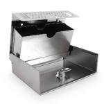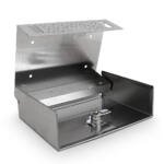 Apraksts tika tulkots automātiski, var rasties kļūdas. ; PIE SIENĀS NErūsējošā tērauda pelnutrauks APRAKSTS: Pie sienas stiprināms nerūsējošā tērauda pelnu trauks ar slēdzamu vāku ērtai tīrīšanai Noņemama pelnu tvertne ērtai iztukšošanai. Komplektā ietilpst montāžas aparatūra un divas atslēgas. ĪPAŠĪBAS: – Piekarināms nerūsējošā tērauda pelnu trauks – Noņemams pelnu konteiners – Aizslēdzams priekšējais panelis – Stiprinājumu KOMPLEKTS IEKĻAUJ: 1x Nerūsējošā tērauda pelnu trauks 2x Atslēgas 1x Stiprinājumu komplekts Specifikācijas: Izmēri: 200mm x 150mm x 60mm (Krāsa/A). : Metāls Materiāls: Nerūsējošais tērauds Svars: 0,90 kg Iepakojuma izmēri: 22×8,5×17,5 cm Svars: 1,2 kg