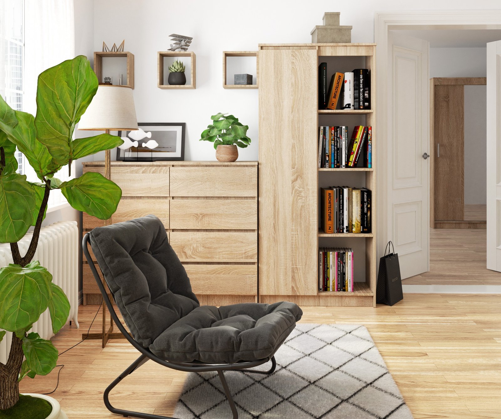 Apraksts tika tulkots automātiski, var rasties kļūdas. – Grāmatu skapis izgatavots no 16 mm laminētas plātnes Kronospan, izturīgs pret nodilumu – Grāmatu skapim kopā ir 8 plaukti – Divpusēja durvju montāža – montāža uz labā un kreisā plaukta. – Malas pārklātas ar ABS ribu, lai nodrošinātu labu aizsardzību pret bojājumiem – Statīvs tiek piegādāts iepakojumā pašmontēšanai – Piegādes rokasgrāmata – Garantija 24 mēneši