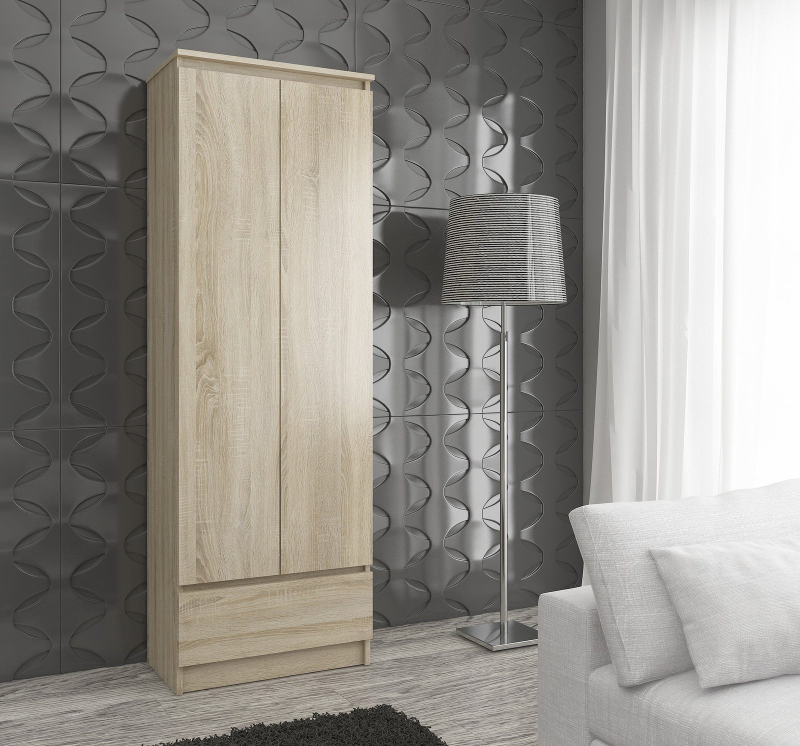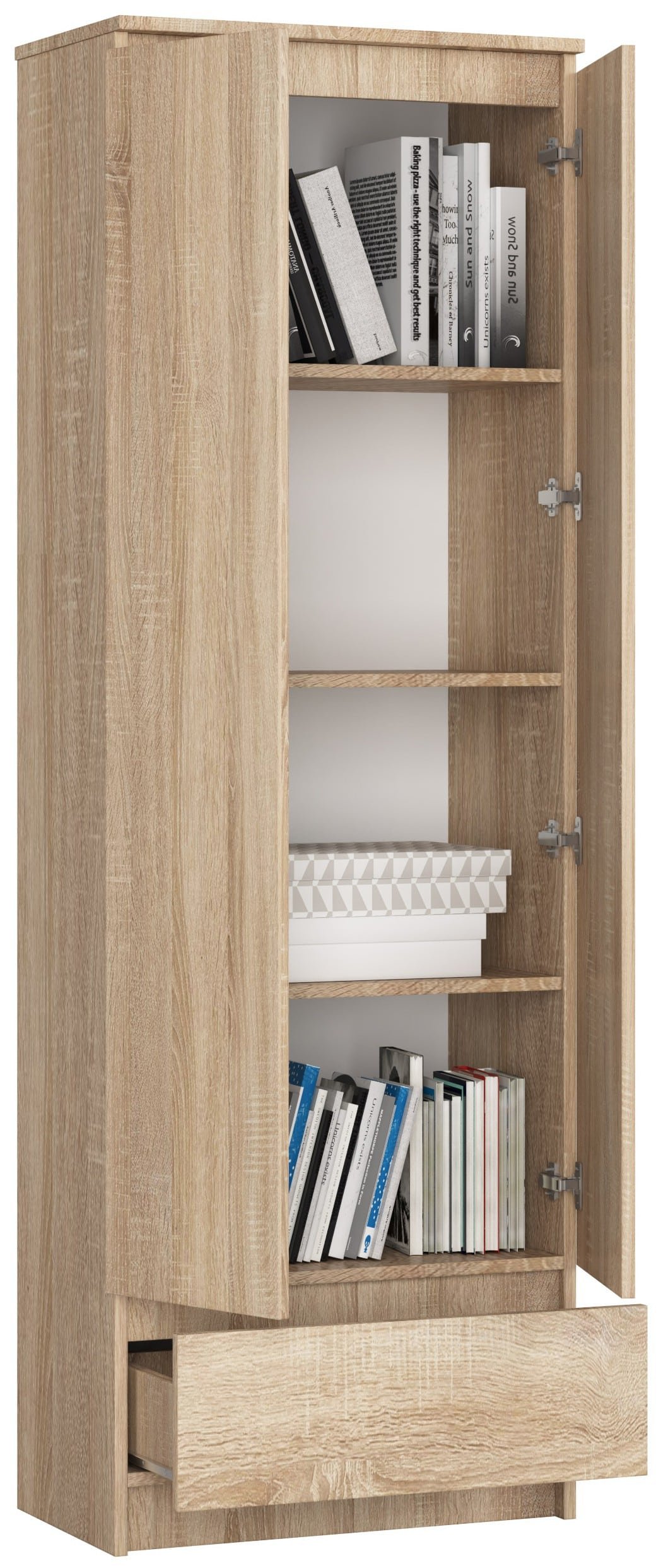 Apraksts tika tulkots automātiski, var rasties kļūdas. BIROJA GALDA SKAPIS R 60 cm Sonoma Oak CLP ir interesants piedāvājums kompaktām mēbelēm, kuras cita starpā var izmantot. dokumentu vai citu noderīgu priekšmetu glabāšanai birojā. Taču to varam izmantot arī dzīvojamo telpu iekārtošanai, attālinātam darbam aprīkotas telpas vai kalpo kā noliktavas telpas. Statīvs izgatavots no 16 mm laminētas plātnes, kuras malās papildus ir izturīgs, nodilumizturīgs ABS saplāksnis. Grāmatu plaukta izmēri: 60 cm (platums), 180 cm (augstums), 35 cm (dziļums). Ietver: noliecamas, pilnas dubultdurvis, atvilktne 30,5 cm (dziļums ), 51 cm (platums), ar integrētām rullīšu vadotnēm ar drošības slēdzeni, četri plaukti, no kuriem trīs var uzstādīt atbilstoši individuālajām vajadzībām. Mēbelēm ir matēta virsma. Statīvs ir paredzēts pašmontēšanai. Svars 38 kg. Instrukcijas ir iekļautas. Precei ir 24 mēnešu garantija.