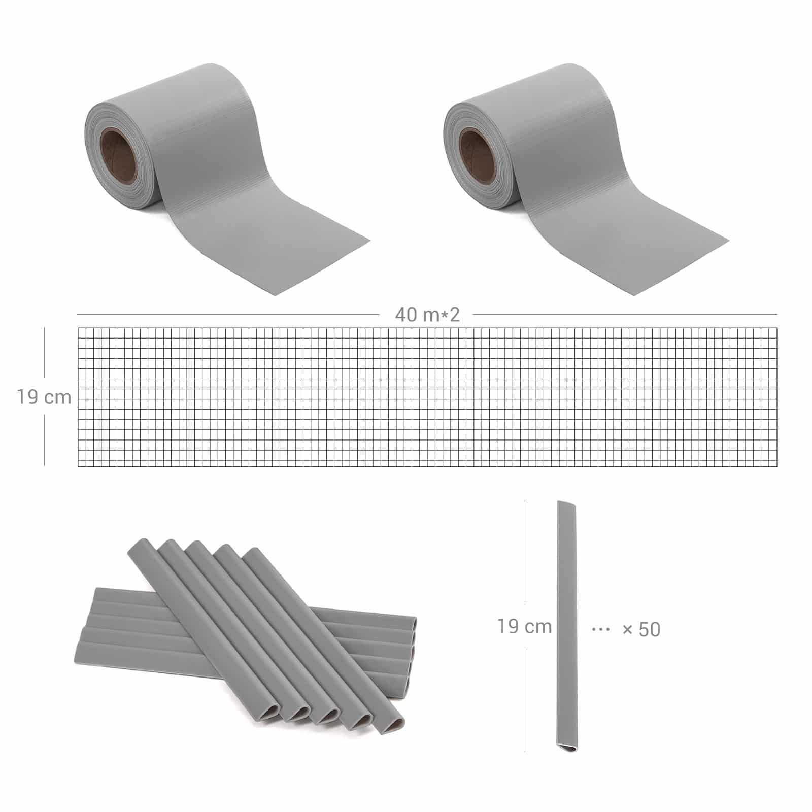 PVC privātuma starpsienas 40 m, gaiši pelēkā krāsā