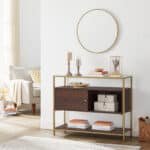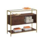Apraksts tika tulkots automātiski, var rasties kļūdas. Produkta informācija: – Krāsa: šokolādes brūns matēts zelts – Materiāls: skaidu plātne, tērauds, rūdīts stikls – Izmērs: 100 x 35 x 80 cm (G x P x A) – Svars: 23,3 kg – Maksimālā statiskā virsmas slodze: 30 kg – Maksimālā statiskā slodze vienā līmenī: 10 kg Piegādes komplekts: – 1 x glabāšanas skapis – 1 x piederumu komplekts – 1 x pretslīpuma ierīce – 1 x manuāla (DE, EN, ES, FR, IT) VASAGLE Piezīmes: – Drošības apsvērumu dēļ, bērniem ir aizliegts kāpt uz izstrādājuma vai spēlēties ar to. – Piestipriniet šo izstrādājumu pie sienas ar komplektā iekļauto pretapgāšanās līdzekli, lai tas neapgāztos. – Šī izstrādājuma virsma ir izgatavota no stikla. Rīkojieties ar to uzmanīgi, lai tas nesaplīstu.