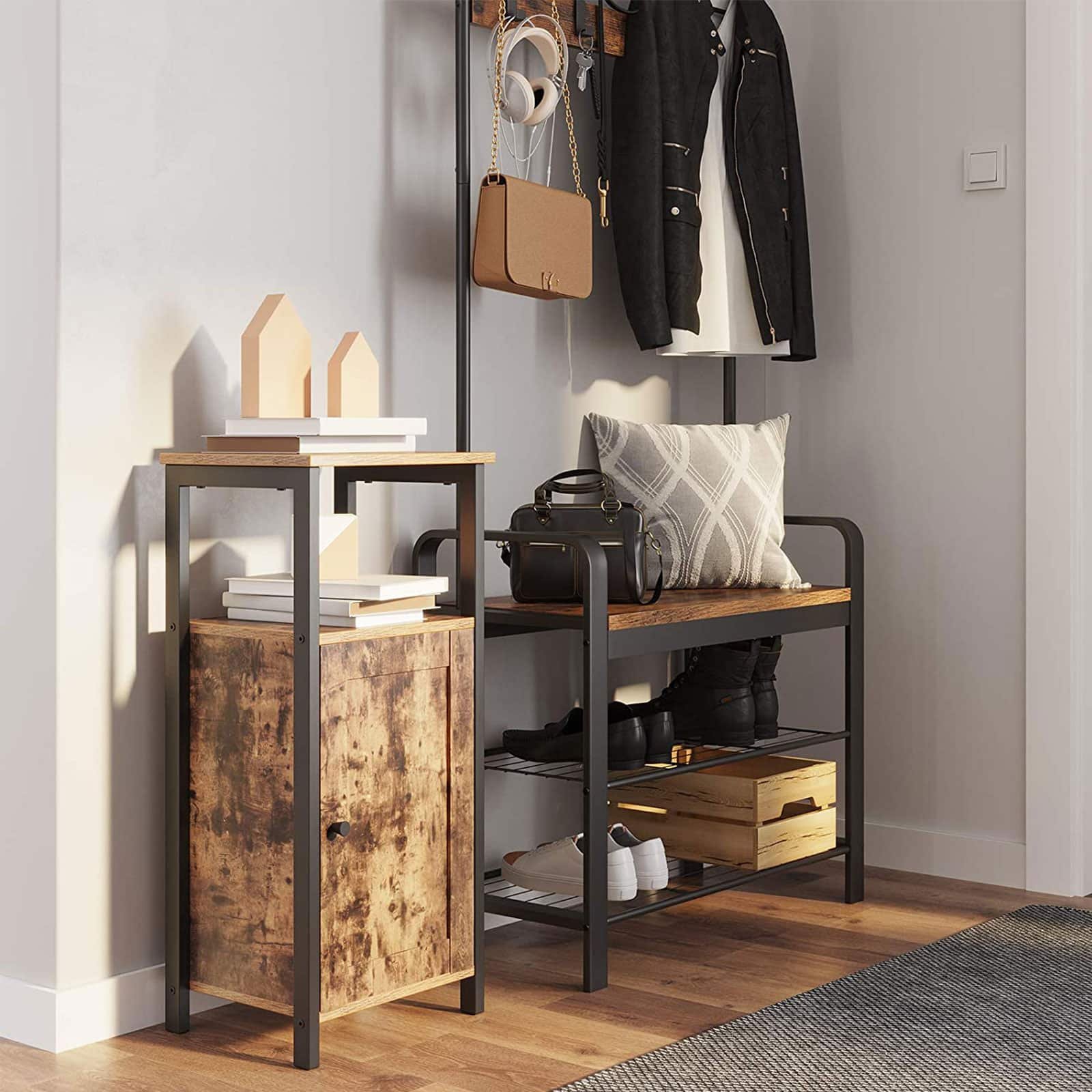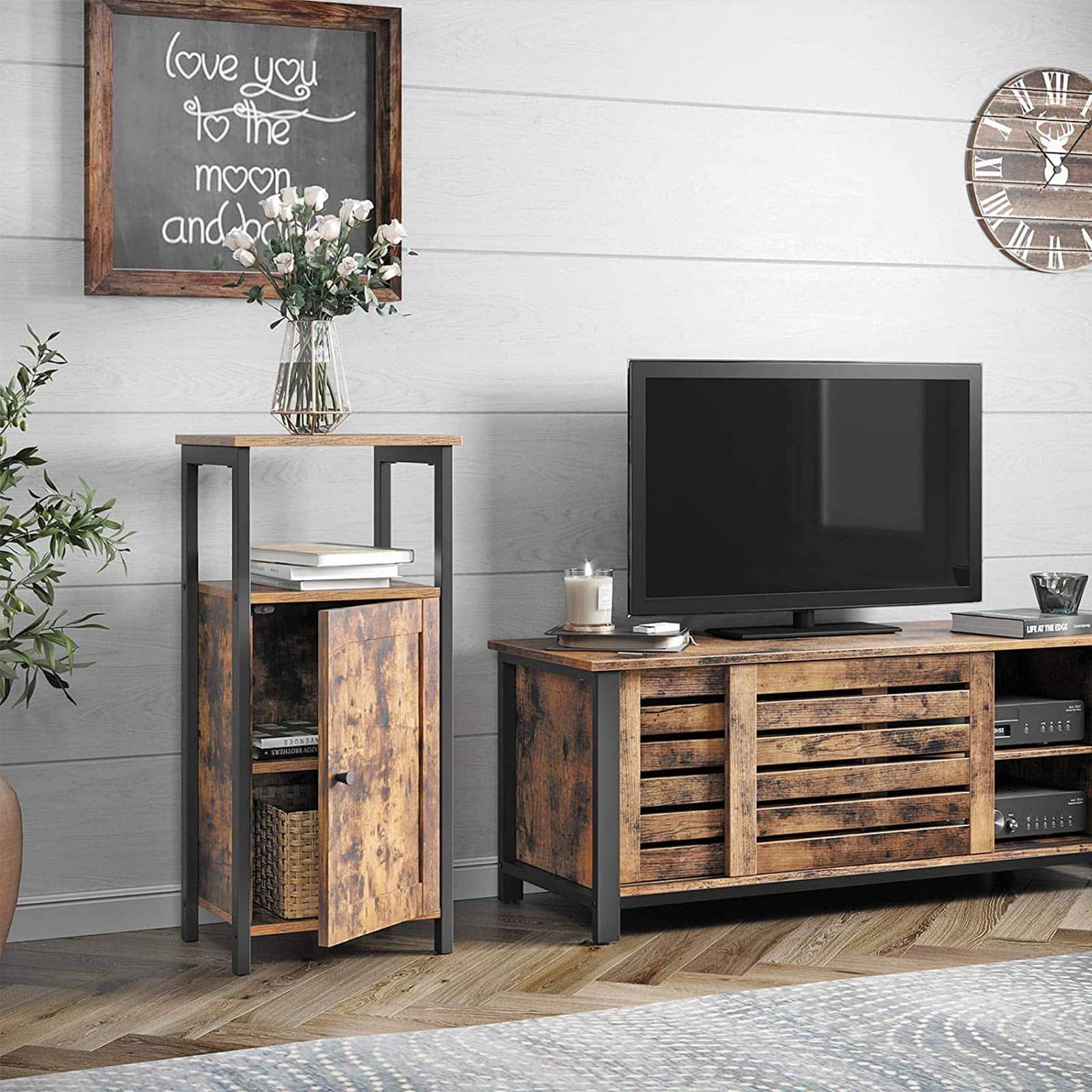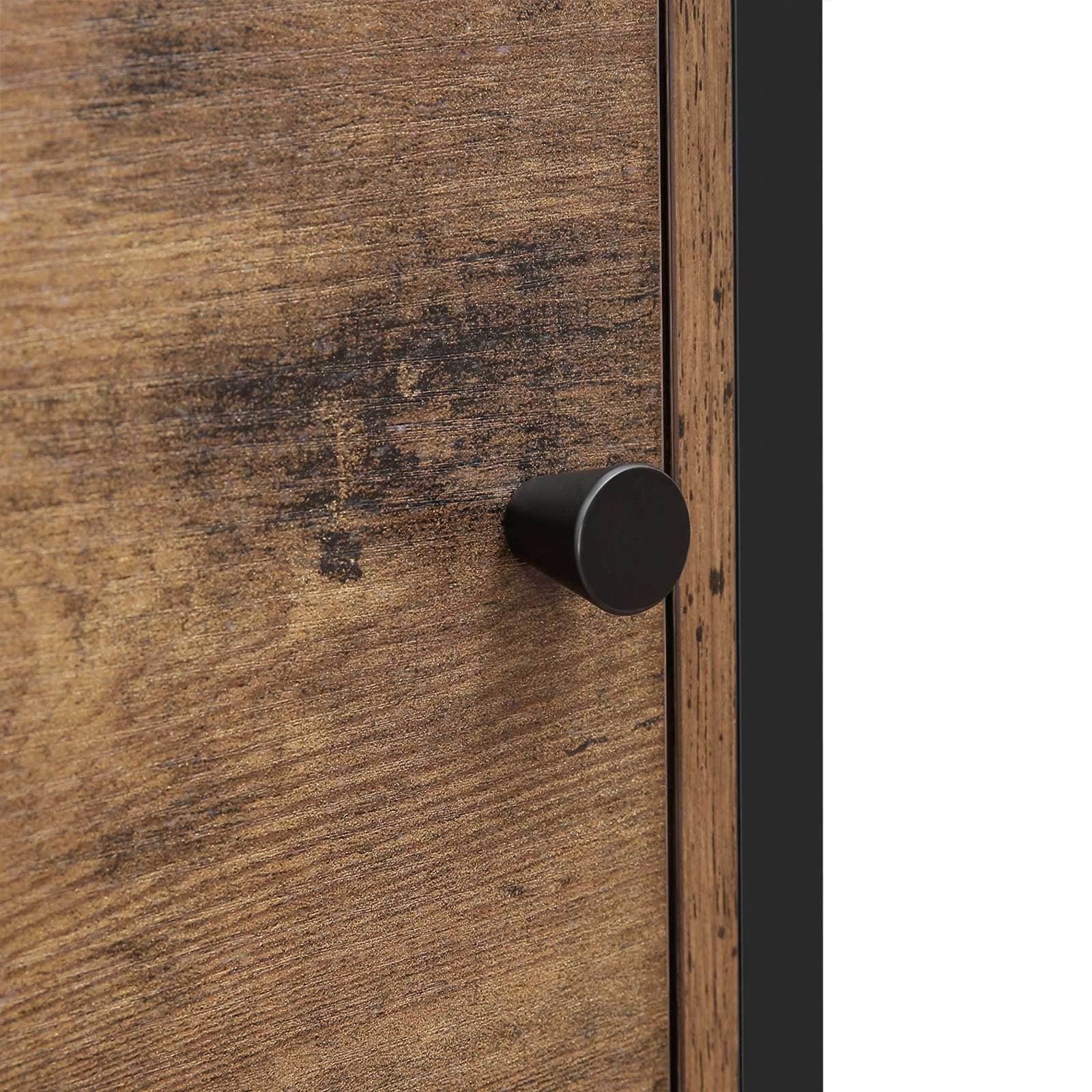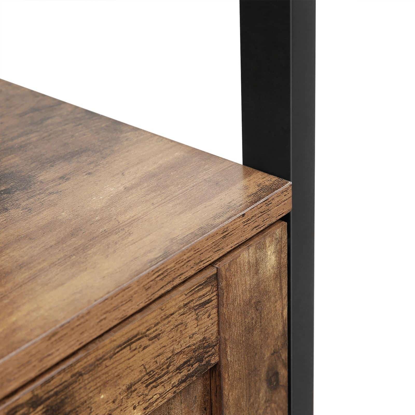 Apraksts tika tulkots automātiski, var rasties kļūdas. Informācija par produktu: – Krāsa: vintage/tumši brūna – Materiāls: skaidu plātne, dzelzs – Izmērs: 37 x 30 x 80 cm (G x P x A) – Svars: 10 kg – Maksimālā statiskā virsmas slodze: 30 kg – Maksimālā statiskā slodze uz vienu plaukta līmenis: 10 kg Piegādes komplekts: – 1 x bufete – 1 x piederumu iepakojums – 1 x instrukcija (DE, EN, ES, FR, IT) VASAGLE Piezīmes: – Drošības apsvērumu dēļ bērniem ir aizliegts kāpt uz izstrādājuma vai spēlējoties ar to. Lietas apraksts