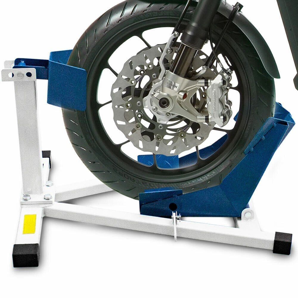 Apraksts tika tulkots automātiski, var rasties kļūdas. Priekšējā motocikla statīvs ir balts un zils; ; Mūsu cietās konstrukcijas statīvs nodrošinās jūsu motociklam stabilu stāvokli transportēšanas, stāvēšanas vai remonta laikā. Aizņem maz vietas. Statīvs ir piemērots riteņiem no 17″ līdz 21″ ar riteņu platumu aptuveni 90-130 mm. Lieliski piemērots mājas garāžai un profesionālai darbnīcai. Paredzēts dīleriem, hobijiem un motociklistiem. ; ; ; Specifikācijas: Izmēri (G/P/A) 710 x 470 x 420 mm Svars: 9,5 kg 1x Lietotāja rokasgrāmata vācu valodā Krāsa: balta/zila, lakota Materiāls: tērauds Iekļauts: 1x motocikla priekšējais statīvs ; ; Kastes izmēri: 66x50x17cm