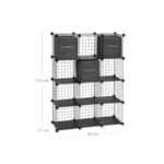 Apraksts tika tulkots automātiski, var rasties kļūdas. 12 KAULIŅI, 3 KASTES: Jums nav jāpērk papildu kastes kauliņu plauktam, un jums nav jāuztraucas par to izmēru. Jo papildus 12 kubiņiem iegūsi 3 neausta auduma kastes sīkumu glabāšanai un izskata sakopšanai. Apģērbi, grāmatas, rotaļlietas, apavi, darbarīki: Šī tīkla plaukta ietilpība ir 10 kg. piemērots dažādu priekšmetu uzglabāšanai. Sakraut mazus priekšmetus? Nekādu problēmu. Vienkārši ievietojiet komplektācijā iekļautos plastmasas paneļus uz režģa plauktiem.Gareniski, vertikāli, pakāpeniski, pagarināti: pateicoties gudrajai DIY savienojuma tehnoloģijai, uzglabāšanas plauktu var paplašināt un pārveidot pēc vajadzības, atkarībā no režģa paneļu skaita un savienojuma elementiem. Lieliski piemērots arī jūsu ģērbtuvei, viesistabai vai zem kāpnēm. Informācija par produktu: Krāsa: melni plankumaina, pelēka Materiāls: dzelzs rāmis, ABS plastmasas savienojums, PP plastmasas loksne, neausta kaste Izmērs: 93 x 31 x 123 cm (G x P x A) Svars: 10 kg Maks. Viena kuba kravnesība: 10 kg Piegādes komplekts: 43 x režģa plāksne (30 x 30 cm) 44 x savienotāji 3 x uzglabāšanas kaste 12 x plastmasas plāksne 1 x gumijas āmurs 2 x pretapgāšanās 1 x instrukcijas (DE, EN, FR) ) , ES, IT) SONGMICS Piezīmes: Šo izstrādājumu var salikt dažādās formās, bet tikai līdz atsevišķu detaļu skaitam Piestipriniet izstrādājumu pie sienas ar komplektā iekļauto pretslīpuma ierīci.