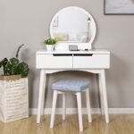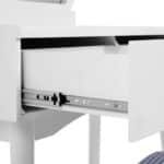 Apraksts tika tulkots automātiski, var rasties kļūdas. Informācija par produktu: Krāsa: balta Materiāls: MDF plāksne, priede, gumija Izmēri: 80 x 128 x 40 cm (tualetes galds), 32,5 x 45,5 x 32,5 cm (taburets) Svars: 20,1 kg Piegādes komplekts : 1 x tualetes galdiņš 1 x spogulis 1 x taburetes 1 x instrukcijas (DE, EN, IT, FR, ES)