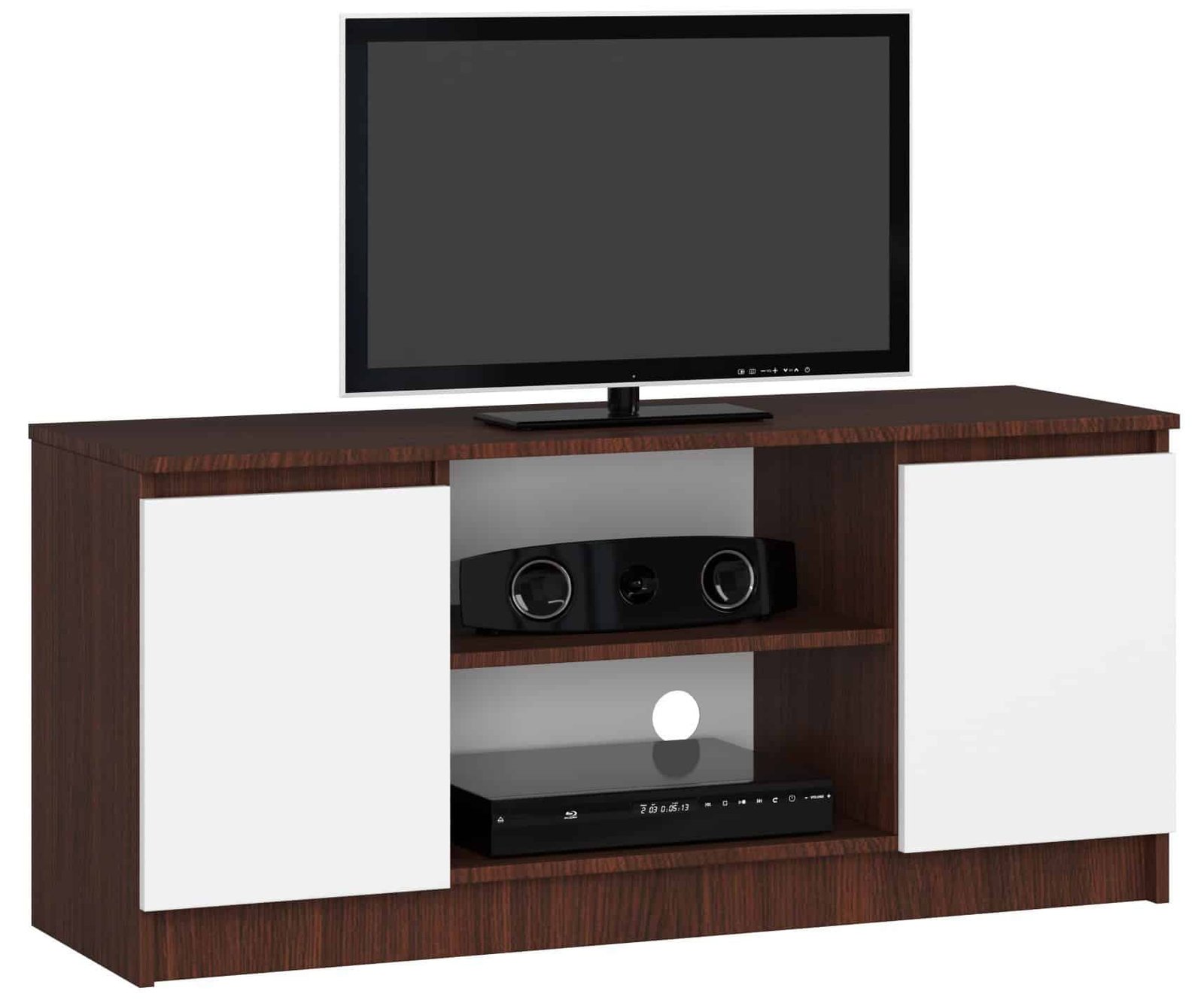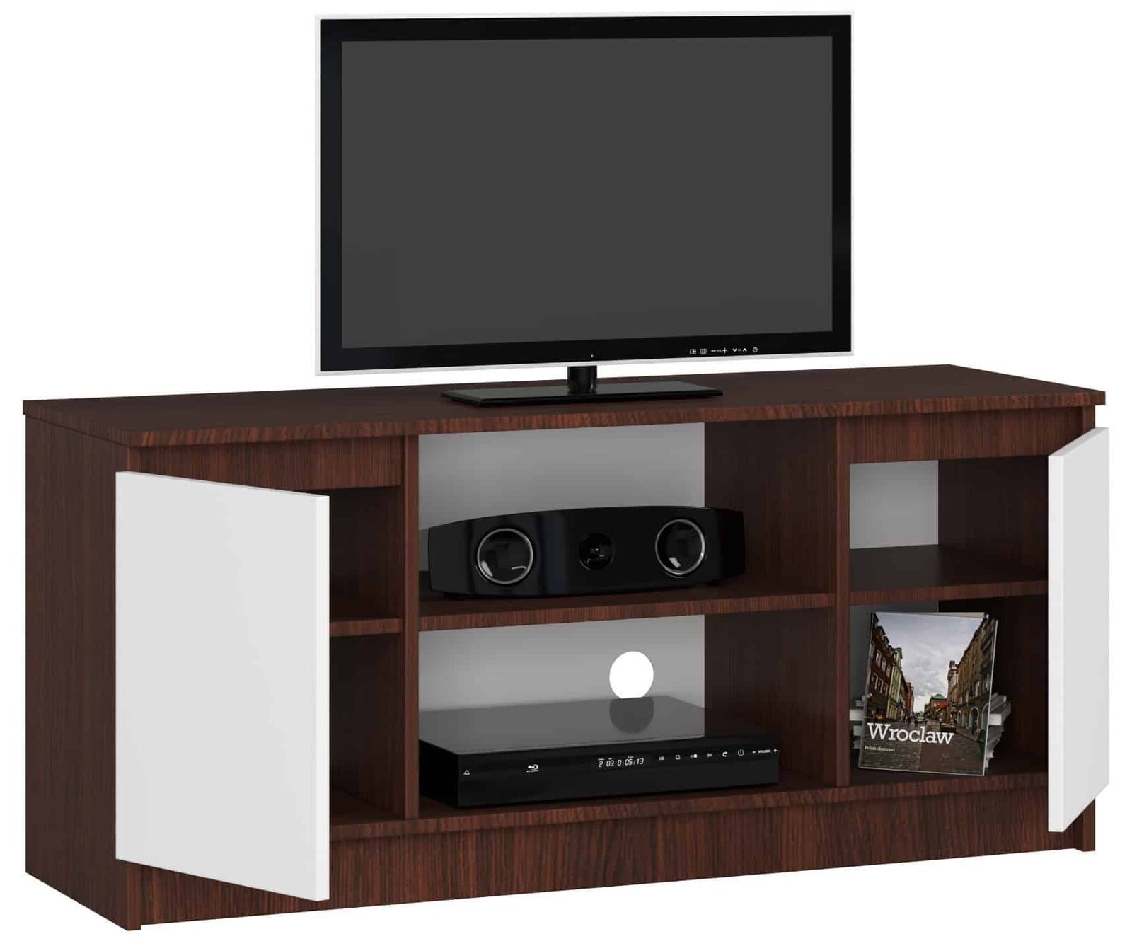 Apraksts tika tulkots automātiski, var rasties kļūdas. Skapis no laminētas plātnes 16 milimetru biezumā ir viens no mūsu piedāvājumiem, kas lieliski piemērots viesistabām, guļamistabām, viesu istabām un daudzām citām telpām. Televizora statīvs, kuru ar prieku piedāvājam, ir augstākās kvalitātes mēbele, kas apvieno divas kontrastējošas krāsas – tumši brūnu un baltu. Interesants piedāvājums ir ārkārtīgi populārs starp klientiem, kuri apmeklē mūsu interneta veikalu, pateicoties rūpīgajam un pamatīgajam darbam, kas ir redzams no pirmā acu uzmetiena. 120 cm televizora skapis pārsteidz arī ar savu moderno dizainu, tāpēc lieliski iederēsies aranžējumiem, ko veidojuši cilvēki, kuri seko līdzi jaunākajām tendencēm un mīl mūsdienīgu interjeru Tumši brūnu televizora skapi var iegādāties mūsu interneta veikalā par pieņemamu cenu, kas arī ir tā priekšrocība. Izturīgā mēbeļu konstrukcija un vizuālās īpašības noteikti apmierinās prasīgāko klientu atzinību. – Kumode izgatavota no laminēta plātnes, izturīga pret nodilumu – Atvilktņu fasādes no laminētas plātnes – Katrās durvīs ir viens plaukts – Malas pārklātas ar ABS malu augstai aizsardzībai pret bojājumiem – Pašmontēta kumode – Piegāde instrukcija – Garantija 24 mēneši. – Ievērības cienīga ir audio aparatūras/dekodētāja atrašanās vieta, kas ir piemērota gandrīz visiem mūsu tirgū esošajiem modeļiem.