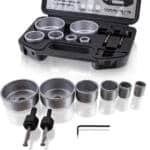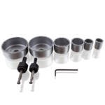 Apraksts tika tulkots automātiski, var rasties kļūdas. Apraksts: Augstas kvalitātes urbji mājām, dārzam un darbnīcām Ideāli piemērots flīžu, ģipškartona, betona un ķieģeļu urbšanai. Urbji nodrošinās tīrus, precīzus un vienmērīgus caurumus. Komplektā ietilpst 6 urbumu zāģi, kā arī divi centrēšanas urbji un sešstūra atslēga., Tehniskie dati Caurumu zāģa diametri: 22, 28, 35, 44, 68, 73 mm Maksimālais griešanas dziļums: 25 mm Centrēšanas urbis 2 gab. 6 mm; Sastāvs: 6 dažāda diametra urbumu zāģi, 2x centra urbji, 1x sešstūra atslēga, 1x korpuss; Iepakojuma izmēri: 35x23x6 cm; ;