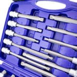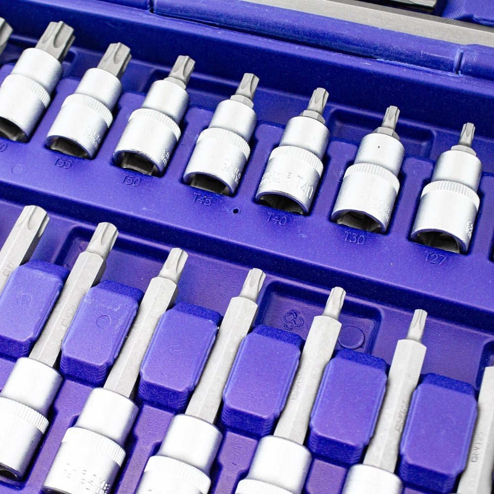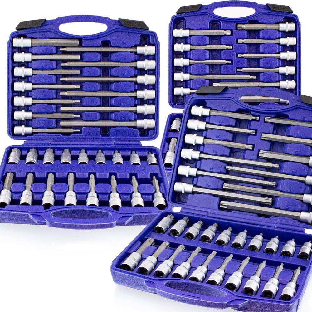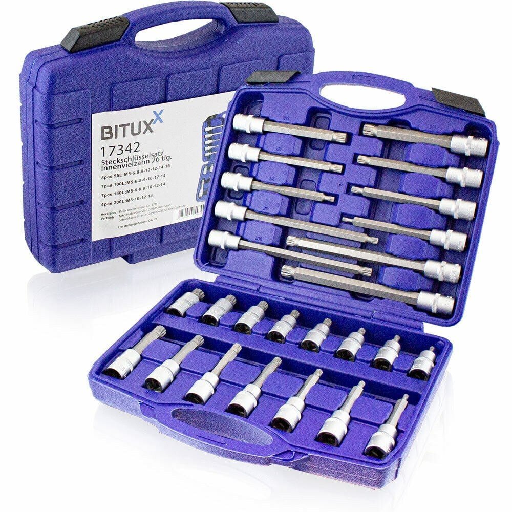 Apraksts tika tulkots automātiski, var rasties kļūdas. NĒ. PRODUKTS: HD17632 ; Bituxx 88 gabalu ligzdu komplekts. Praktiskos un ērtos maciņos paslēpts kontaktligzdu komplekts no izturīga un izturīga hroma vanādija tērauda. Lielisks komplekts ambiciozam amatniekam. Komplektā: iekšējās vairāku zobu ligzdas: ; 8 uzgriežņu atslēgas, 55 mm garš, izmēri M5, M6, M8, M9, M10, M12, M14 un M16; 7 uzgriežņu atslēgas, 100 mm gari, izmēri M5, M6, M8, M9, M10, M12 un M14; 7 uzgriežņu atslēgas, 140 mm garš, izmēri M5, M6, M8, M9, M10, M12 un M14; 4 uzgriežņu atslēgas, 200 mm gari, izmēri M8, M10, M12 un M14. ; Iekšējās sešstūra ligzdas: ; 9 x 55 mm sešstūra uzgriežņu atslēgas 5, 6, 7, 8, 10, 12, 14, 17 un 19 mm izmēros; 8 5, 6, 7, 8, 10, 11, 12 un 13 mm sešstūra uzgriežņu atslēgas 100 mm sešstūra uzgriežņu atslēgas; 7 x 140 mm sešstūra uzgriežņu atslēgas 5, 6, 7, 8, 10, 12 un 14 mm izmēros; ;6 5, 6, 7, 8, 10 un 12 mm sešstūra uzgriežņu atslēgas 200 mm sešstūra uzgriežņu atslēgas. ; Torx: ; 10 uzgriežņu atslēgas, 55 mm garš, izmēri T20, T25, T27, T30, T40, T45, T50, T55, T60 un T70; 10 uzgriežņu atslēgas, 100 mm garš, izmēri T20, T25, T27, T30, T40, T45, T50, T55, T60 un T70; 6 uzgriežņu atslēgas 140 mm garumā, izmēri T40, T45, T50, T55, T60 un T70; 6 200 mm gari uzgriežņu atslēgas izmēros T40, T45, T50, T55, T60 un T70. ; ; Specifikācijas: ; Materiāls: hroma vanādija tērauds, matēts hroms; Ieliktņi: 1/2″ (12,5 mm); Montāža: kvadrātveida un rievota.