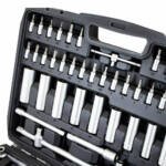 Apraksts tika tulkots automātiski, var rasties kļūdas. Profesionāls uzgriežņu atslēgu komplekts, 171 daļ. hroma vanādija tērauda instrumentu futrālis. Šis 171 daļas sprūdrata instrumentu futrālis ir ideāls komplekts ambiciozam DIY entuziastam, parocīgs un skaidrs, droši glabājams aizslēdzamā futrālī. Instrumenti ir izgatavoti no hroma vanādija tērauda, lai palielinātu izturību, un hroma saturs uzlabo aizsardzību pret koroziju;;. Tehniskie dati: Korpuss: Cieta ABS plastmasa Instrumenta materiāls: Hromvanādija tērauds komplektā Komplektā ietilpst: 1/2 ” 17×1/2″ ligzdas: 10, 11, 12, 13, 14, 15, 16, 17 , 18 , 19 , 20 , 21, 22, 24, 27, 30, 32 mm 5×1/2″ īpaši dziļas ligzdas: 16, 17, 18, 19, 22 mm 2×1/2″ Torx ligzdas: E20, E24 2×1/2″ aizdedzes sveces ligzdas : 16 mm un 21 mm 2×1/2″ zibspuldze: 5″ un 10″ 1/4″ 30×1/4″ uzgalis: H2, 3, 4, 5, 6 fd4, 5 .5.5, 7PH1, 2, 3 T8, 9, 10, 15, 20, 25, 27 30, TT8, 9, 10, 15, 20, 25, 27, 30 13x 1/4″: 4, 4,5, 5, 5,5, 6, 7, 8, 9, 10, 11, 12, 13, 14 mm 1/4×7″ papildu ligzdas: 4, 5, 6, 7, 8, 9, 10 mm 1/4″ x5: Torx E4, E5, E6, E7, E8 1/4″x2 “Pagarinājumi: 2″ un 4″ 1×1/4″ T veida rokturis 1×1/4″ spraudņa turētājs: 6″ 3/8″ 10×3/8” ligzdas: 10, 11, 12, 13, 14, 15, 16, 17, 18, 19 m 6×3/8: “Torx E10, E11, E12, E14, E16, E18 6x 3/8″ īpaši dziļas ligzdas: 10, 11, 12, 13, 14, 15 mm 1x 3/8″ aizdedzes sveces uzgriežņu atslēga Kontaktligzdas: 21mm 1x 3/8″ Pagarinājumi: 6″ 3x RATCHET: 1/4″, 3/8″ un 1/2″ 3x Savienotāji: 1/4″, 3/8″ un 1 /2″ 2x savienotāji (8 mm): 3/8″ un 1/2” 1x 3 funkciju adaptera BITS biti: H7, 8, 10, 12, 14 FD8, 10 , 12 pH 3, 4 PZ3, 4 T40 45, 50, 55, 60, 70 TT40, 45, 50, 55, 60, 70 10x biti: T3, 4, 5, 8, 9, 10, 15, 252, 30 10x biti: TT4, 5.5, 7, 8, 9, 10, 15, 25, 30 INBUS 7x sešskaldņu uzgriežņu atslēgas: 1,5, 2, 2,5, 3, 4, 5, 6 mm1 1x plastmasas korpuss