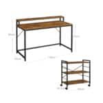 Apraksts tika tulkots automātiski, var rasties kļūdas. Informācija par produktu: Krāsa: vintage brūni melna Materiāls: skaidu plātne, tērauds Izmērs: 118 x 60 x 89 cm (G x P x A) Svars: 26,5 kg Maks. Statiskā slodze: 50 kg Piegādes komplekts: 1 x datora galds 1 x piederumu komplekts 1 x rokasgrāmata (DE, EN, FR, ES, IT) VASAGLE Piezīmes: Drošības apsvērumu dēļ bērniem ir aizliegts kāpt uz izstrādājuma vai spēlēties ar to.
