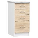 Virtuves skapis NORE Lima S40 ar 4 atvilktnēm, baltā/ozola krāsā